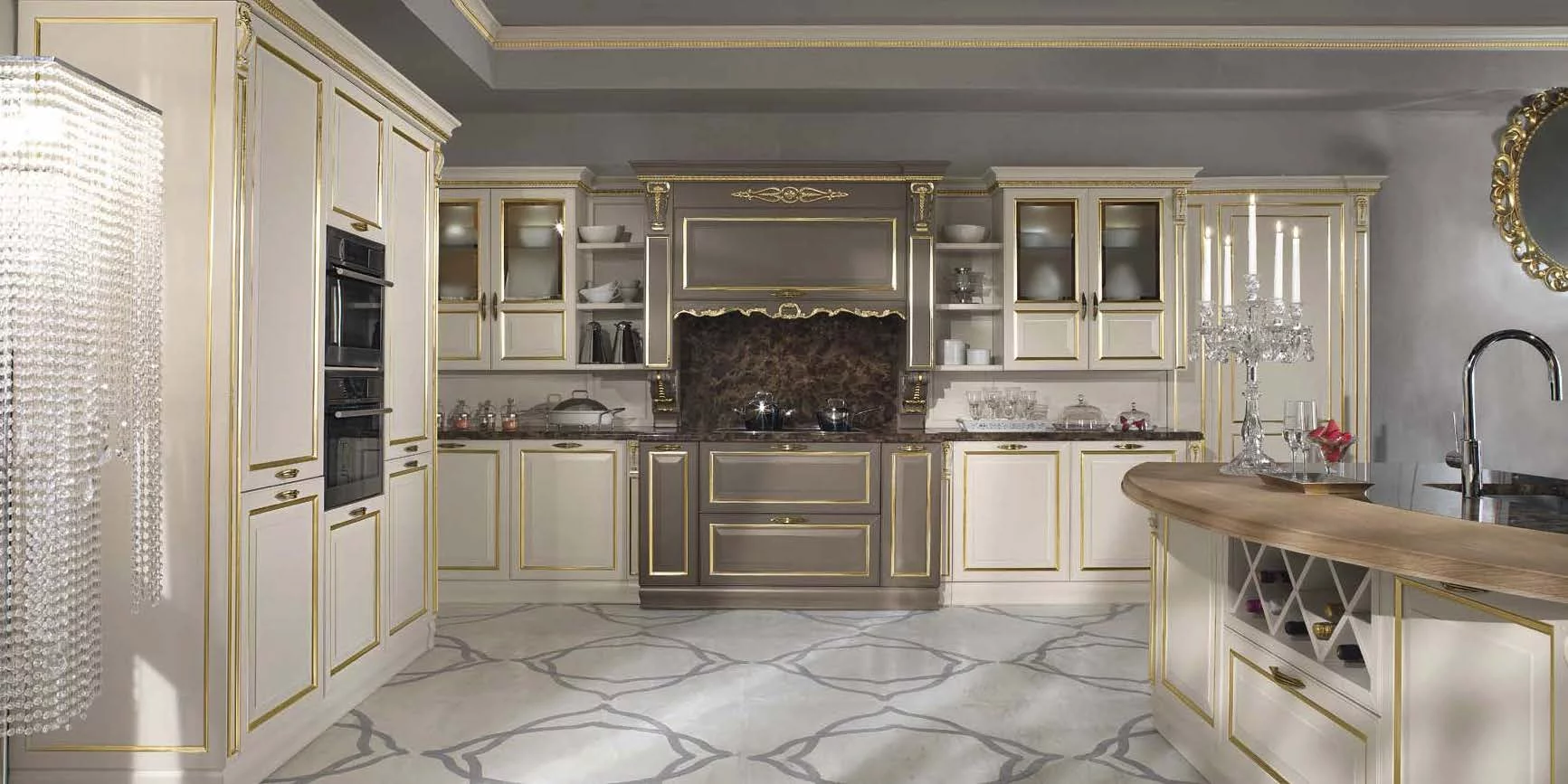 Кухня Dafne от итальянской фабрики Giulia Casa стала примером воплощения простой элегантности. Чёткие линии, понятные формы, комбинация двух цветовых гамм — молочных и серых фасадов, обрамлённых золотой патиной создают классический силуэт с невероятно функциональной «начинкой».