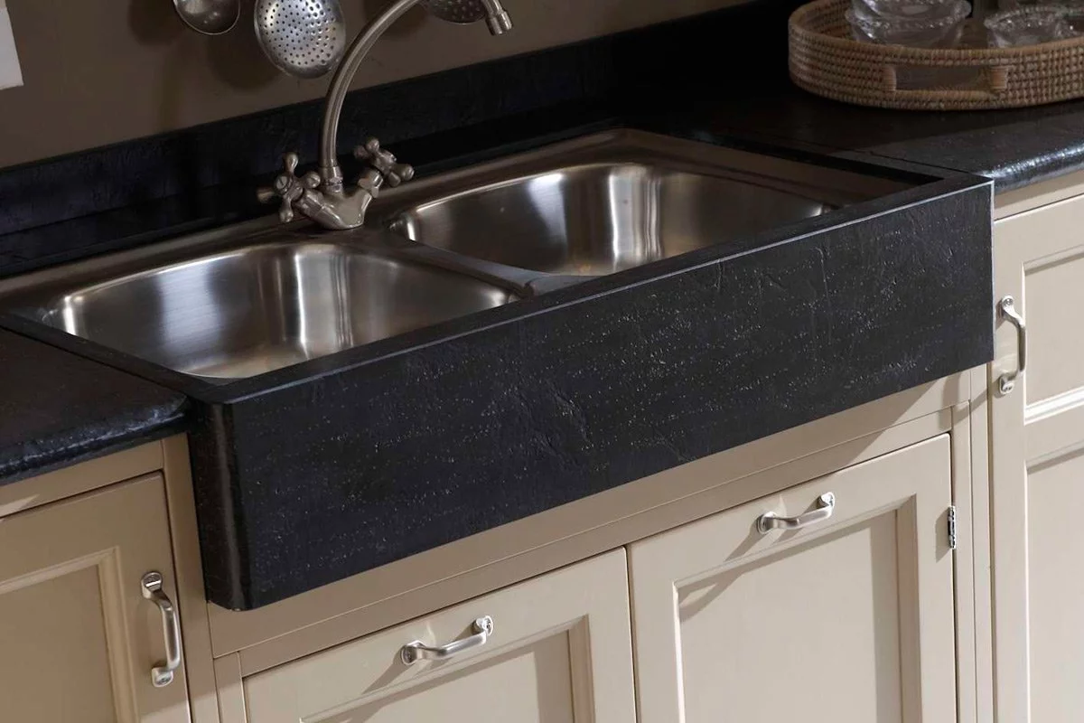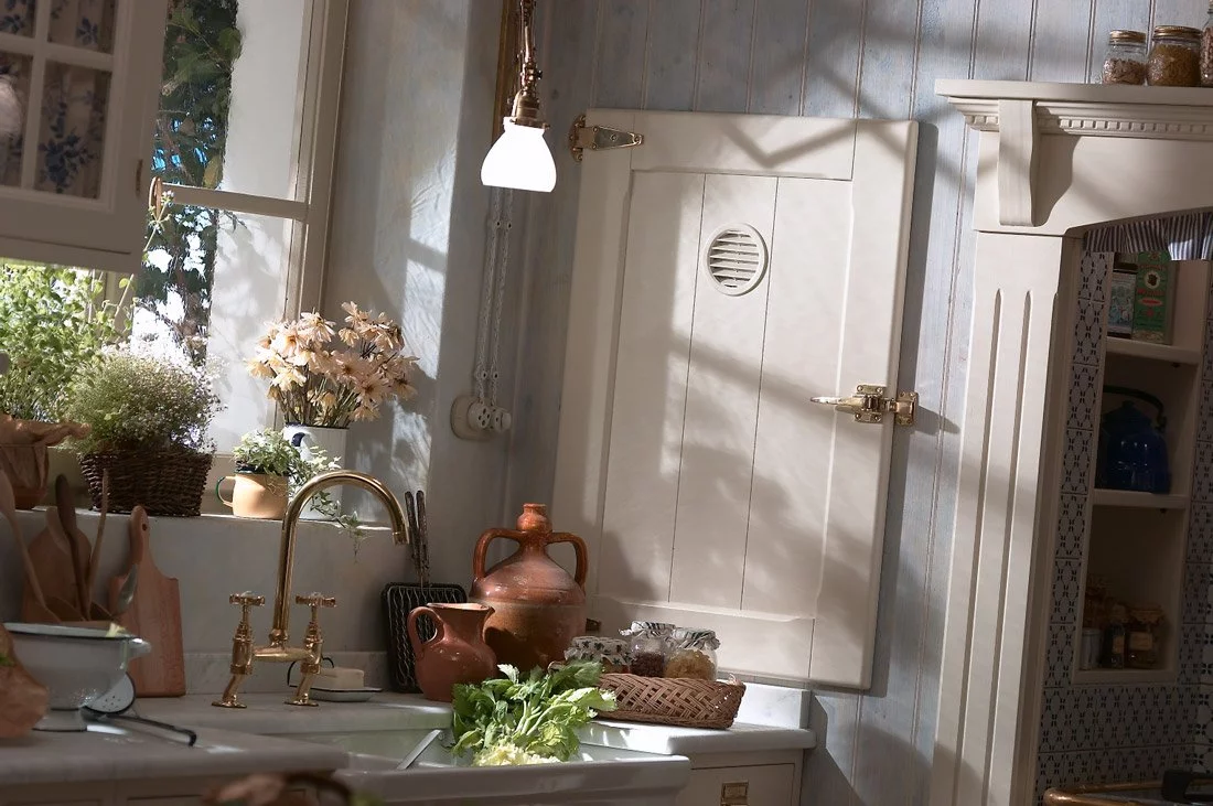Гарнитур выполнен в светлых пастельных оттенках из натурального цельного дерева. Обрамлённые широкие фасады кухни Old England обладают эргономичностью и позволяют рационально использовать кухонное пространство. Практичность модели достигается оснащением гарнитура каменной раковина.