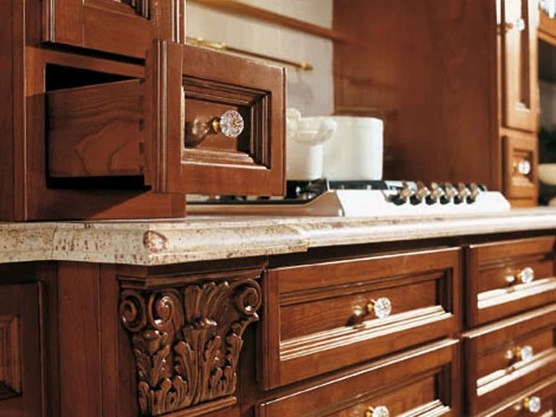 Гармоничное сочетание форм и декоративных элементов придают шарм и элегантность каждому изделию Martini. Изысканные цветовые комбинации, насыщенные тона и детали в золотой и серебряной фольге обогащают пространство и создают неповторимую атмосферу. Модильоны, пилястры и другие резные декоры, выполненные вручную опытными мастерами, подчеркивают ценность каждого изделия.fallbacklang:TOSCA. Fitted kitchen.