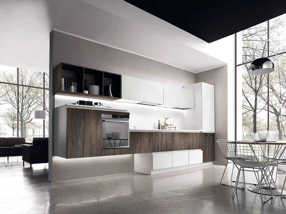 Кухня Sinhro Wood — превосходное решение для любителей эклектики и минимализма от итальянской фабрики Miton Cucine. Композиция из модулей заканчивается встроенной многофункциональной печью Barazza, выполненной из нержавеющей стали. Система выдвижных ящиков и ниш продумана до мелочей: любой необходимый ингредиент всегда под рукой. За простыми линиями дверей скрывается большой объем рабочей поверхности. Богатый спектр оттенков и широкий ряд декорирующих материалов позволяет комплектовать данную модель с учетом индивидуальных пожеланий.