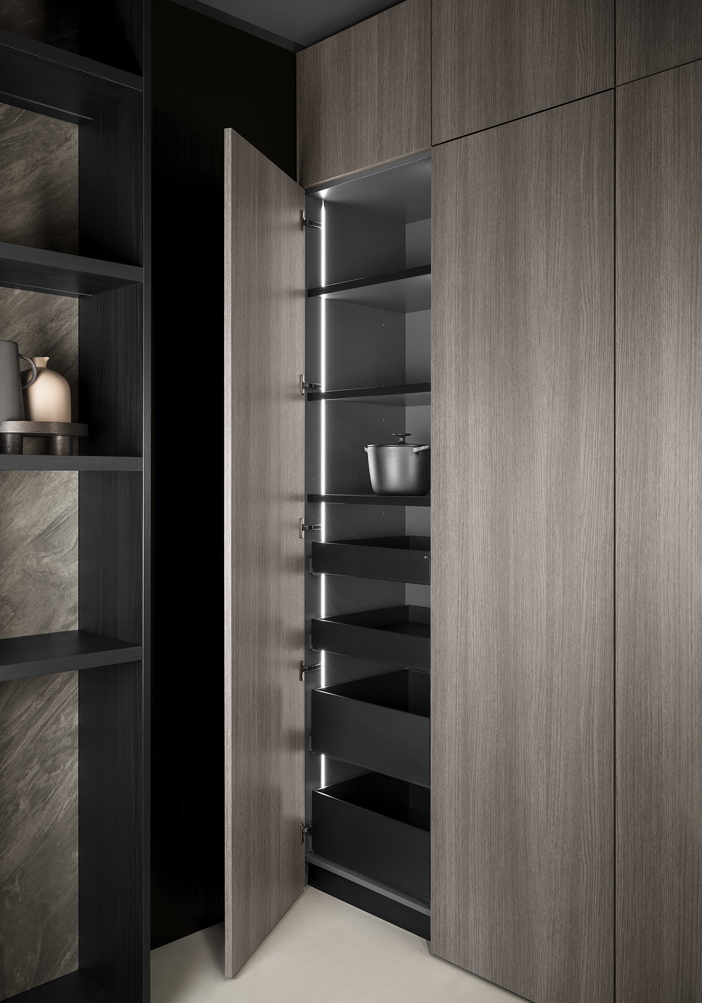Особую роль играет эргономика: все решения направлены на повышение удобства. Техника расположена таким образом, чтобы минимизировать лишние движения, системы хранения увеличивают вместимость без утяжеления пространства, а функциональные элементы остаются скрытыми, сохраняя чистоту дизайна.
