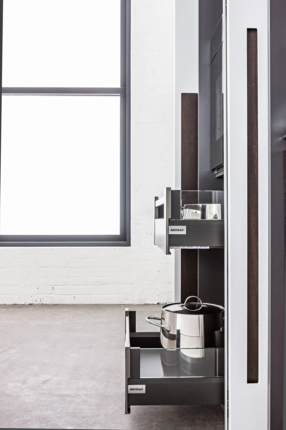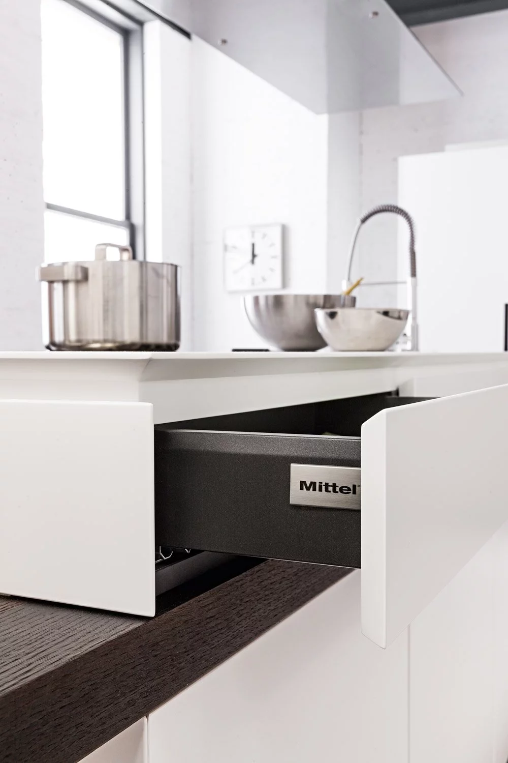 Это лёгкая и воздушная, геометрическое кухня Davanti Ad Un Caffe’ даст вам полную свободу самовыражения, демонстрации своих навыков в кулинарии или полного релакса в приятной обстановке. Сочетание матового белого лака и запечённой древесины дуба создаёт идеальные условия для полностью монохромного дизайна. Встраиваемые дубовые ручки и «столешница-в-столе» являются примерами небольших стильных деталей, которые являются отличительной чертой всех кухонь Mittel.