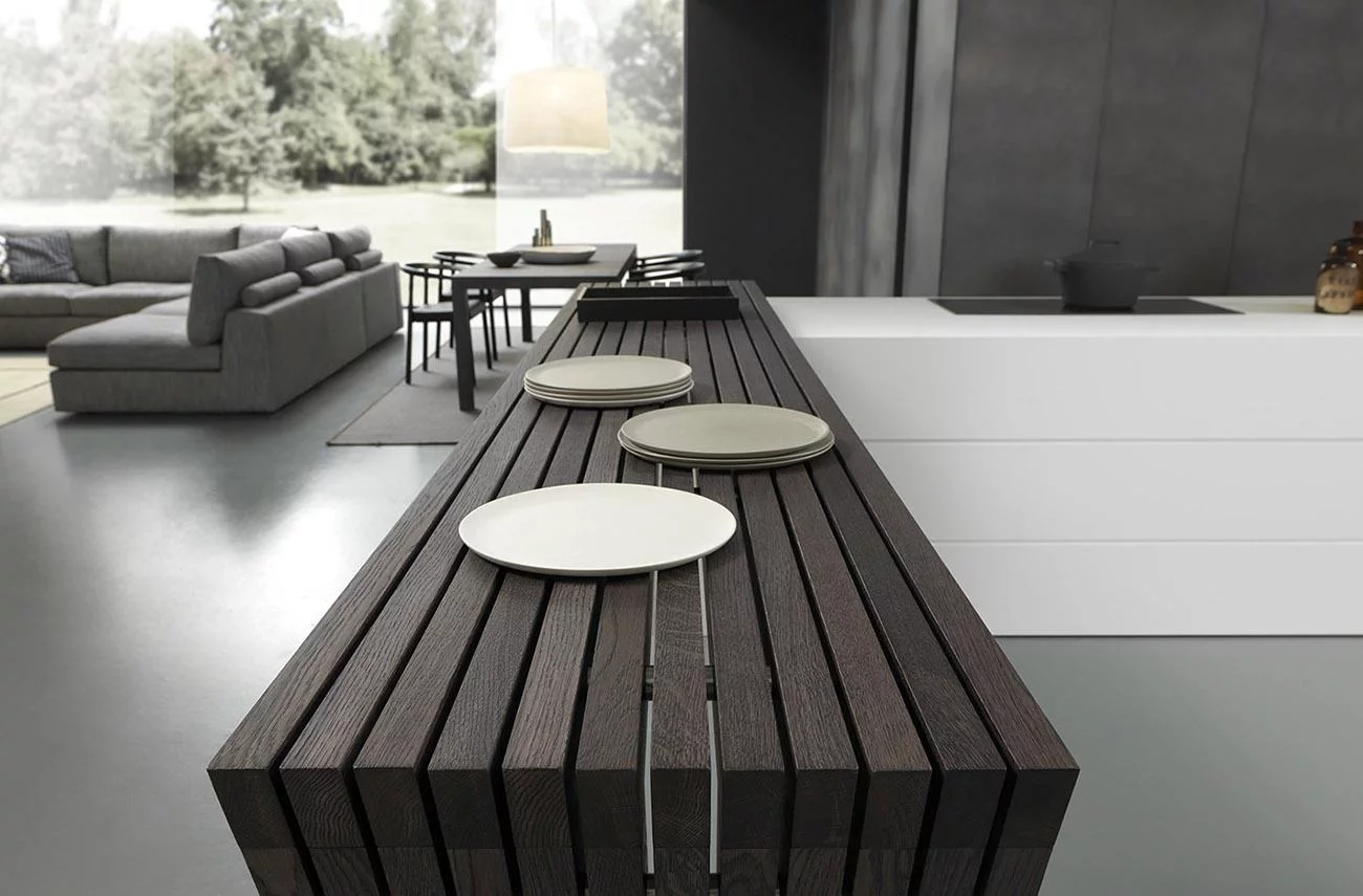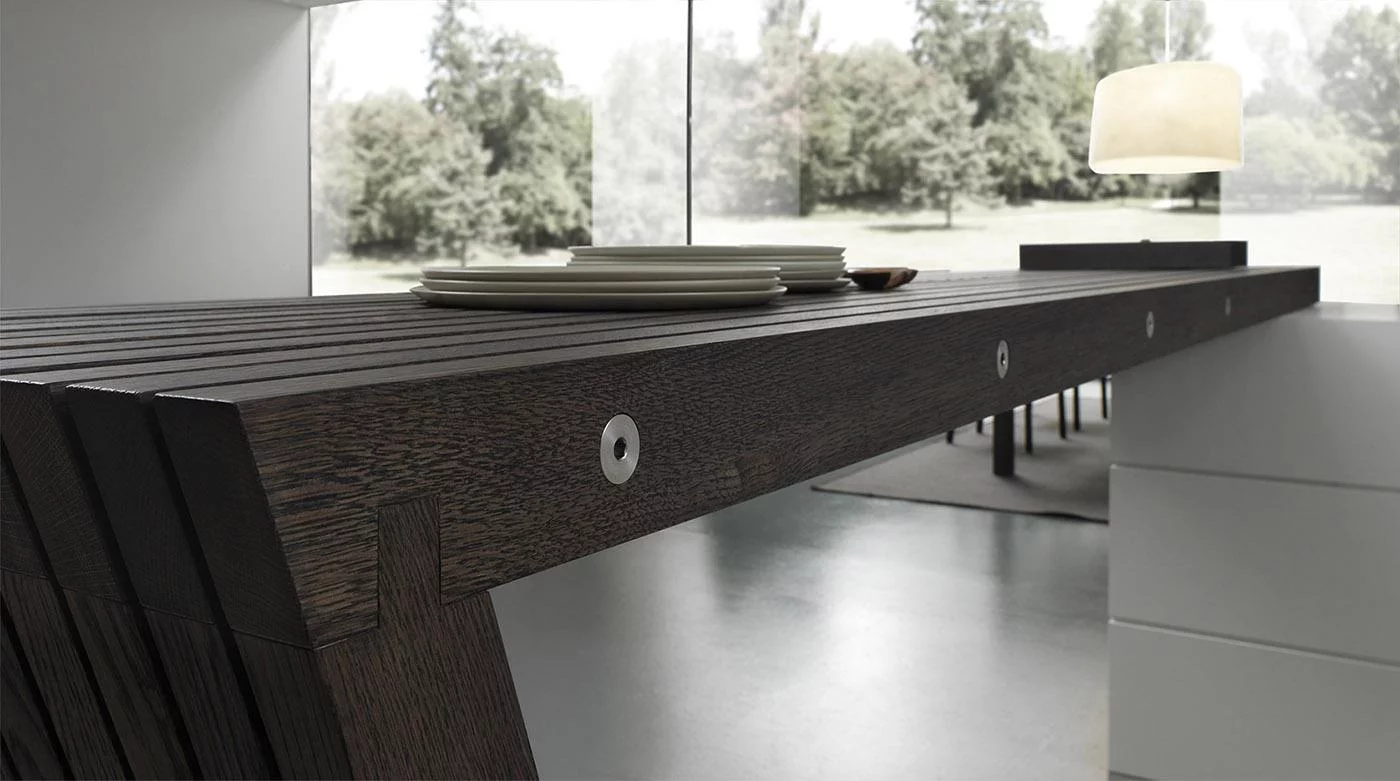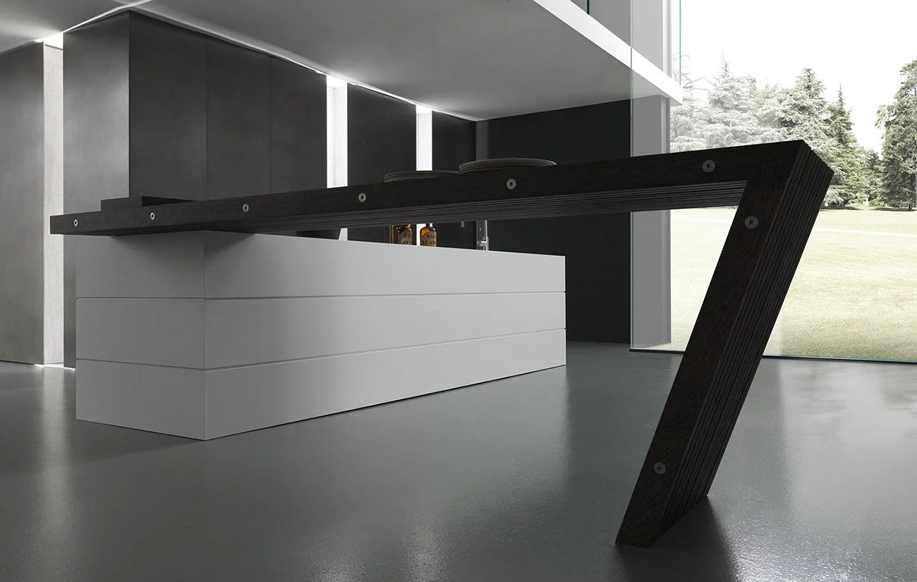 При изготовлении кухни используется массив натуральной древесины, керлит, закаленное стекло, а также кориан и высокопрочный шпон. Дверцы оснащены push-to-open механизмом, который позволяет сделать процесс открытия и закрытия лёгким и плавным. Лакировка кухни коллекции Blade эпоксидным порошком придаёт изделию высокую устойчивость к механическим повреждениям и сохраняет эстетичный внешний вид на долгие года.