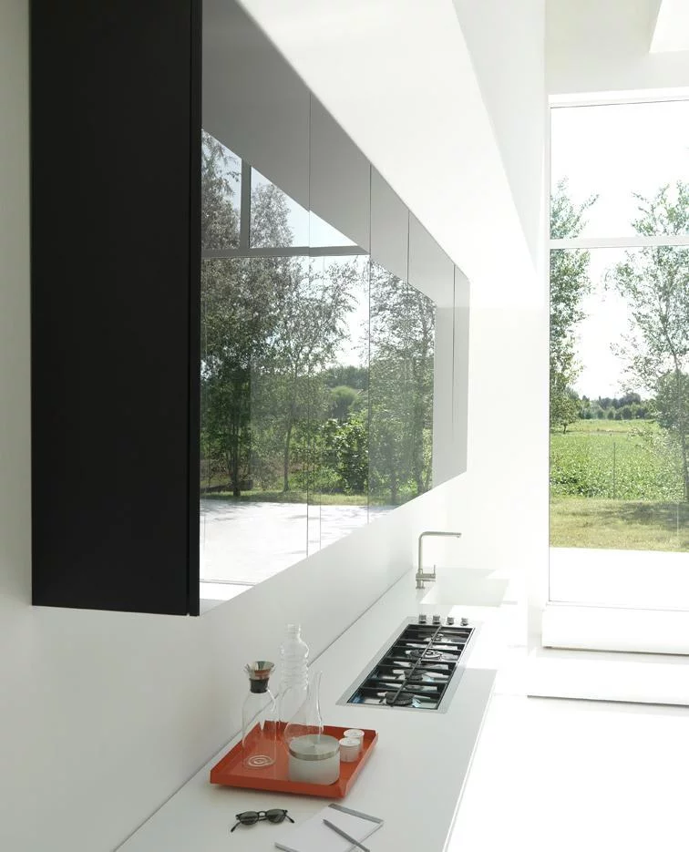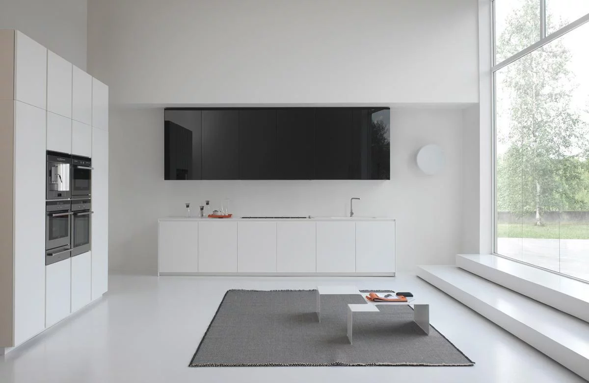 Дизайн кухонь Twenty, созданный специалистами итальянской фабрики Modulnova, сочетает в себе одновременно кухню и гостиную. Ее простой модульный стиль подчеркивается живописными пейзажами, которые открываются из окна.