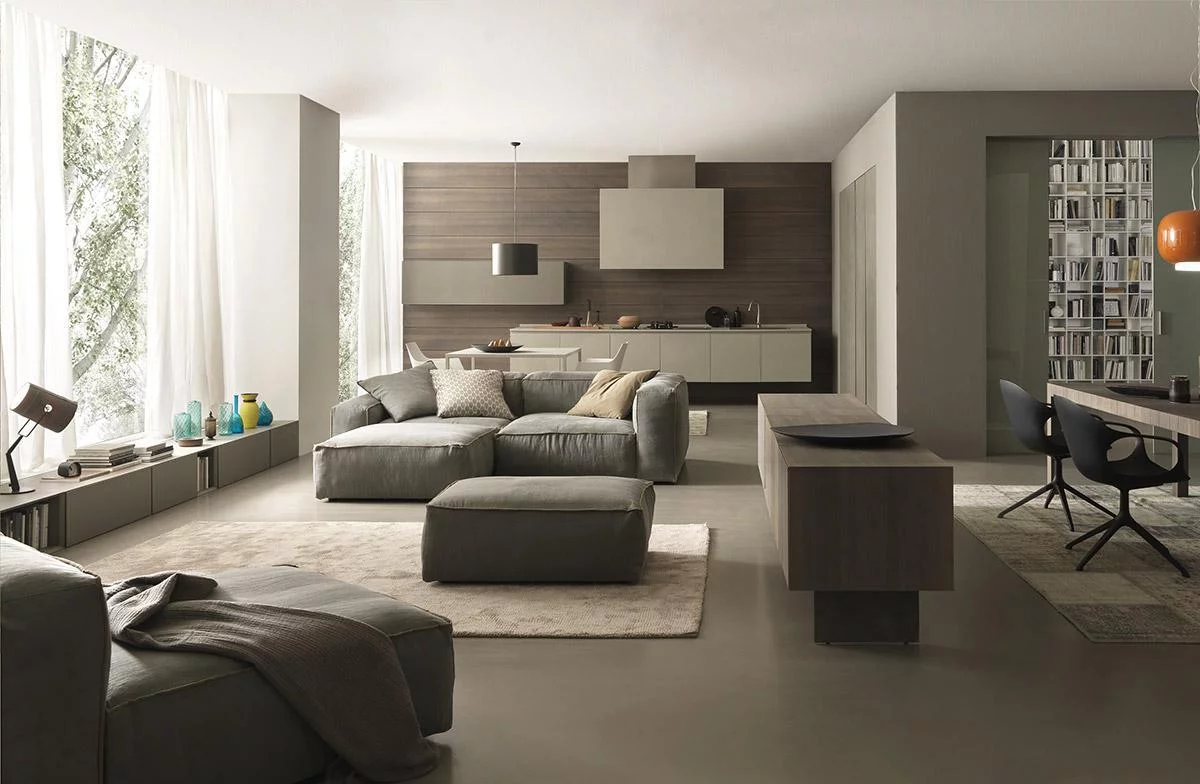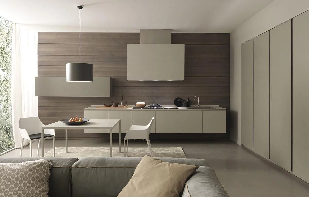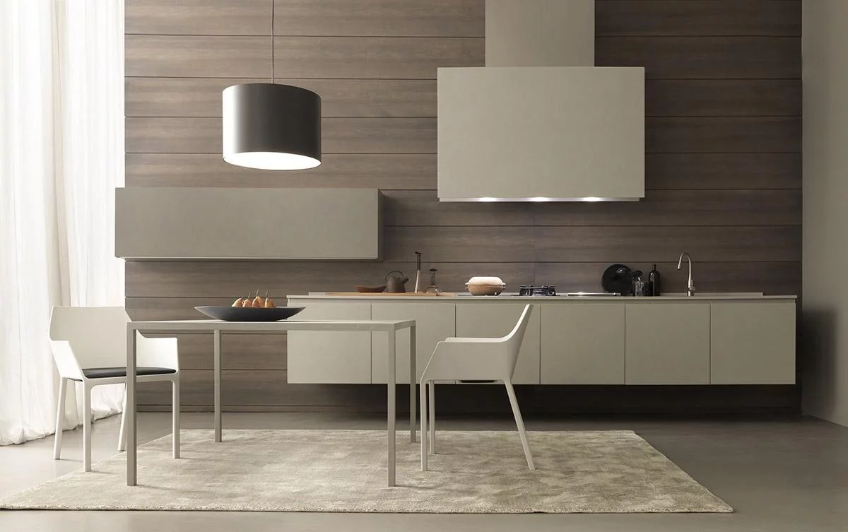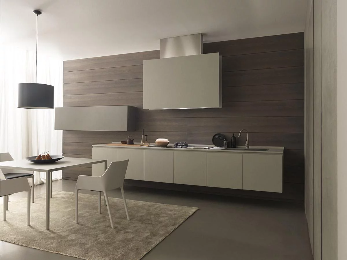 Дизайн кухонь Twenty, созданный специалистами итальянской фабрики Modulnova, сочетает в себе одновременно кухню и гостиную. Ее простой модульный стиль подчеркивается живописными пейзажами, которые открываются из окна.