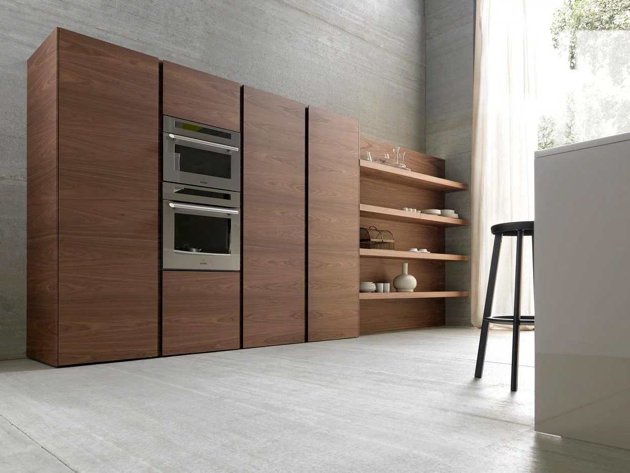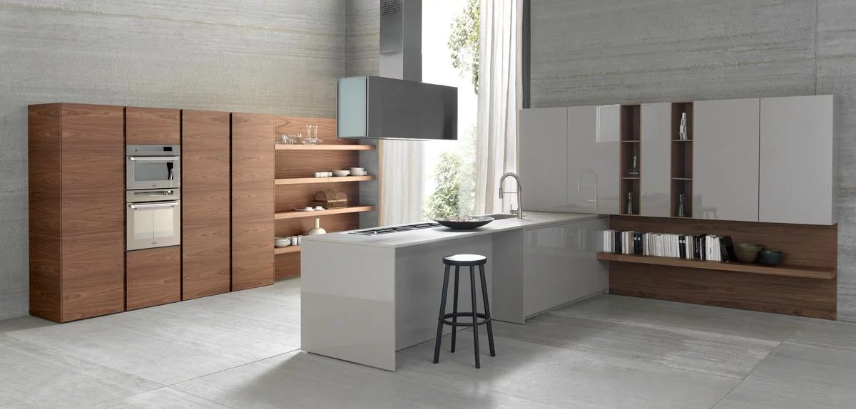 Дизайн кухонь Twenty, созданный специалистами итальянской фабрики Modulnova, сочетает в себе одновременно кухню и гостиную. Ее простой модульный стиль подчеркивается живописными пейзажами, которые открываются из окна.