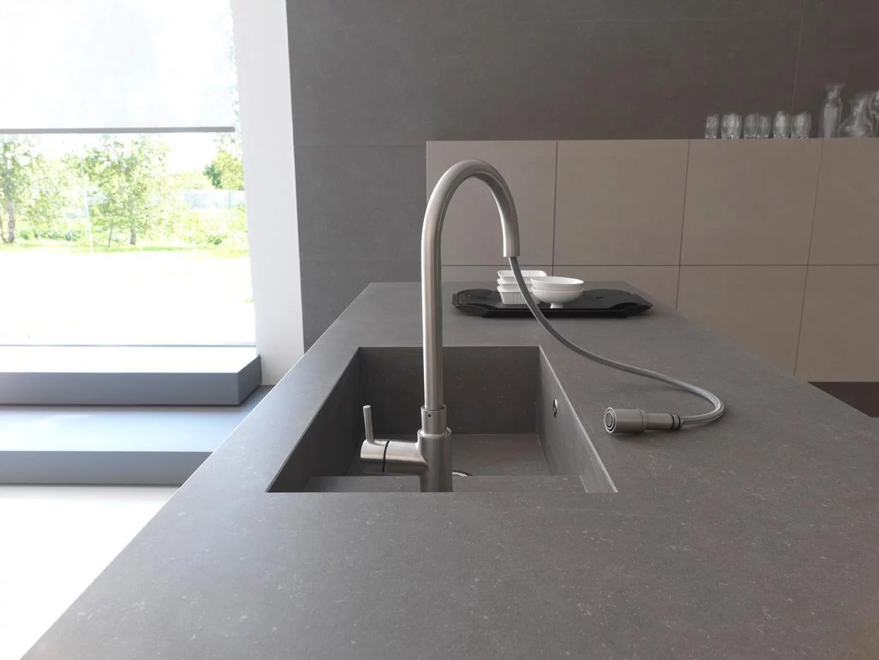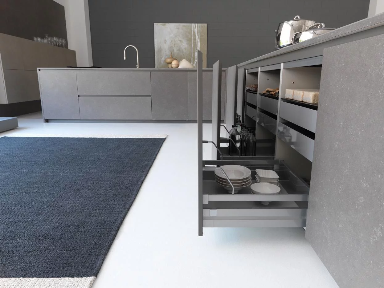 При этом кухня не только красива, но и предельно функциональна благодаря большим секциям и просторной рабочей поверхности, выполненной из акрилового камня. Покрытие из такого камня (кориана) идеально подходит для тех, кто стремится угнаться за модой и одновременно с успехом противостоять течению времени: Corian устойчив к износу, экологически чист и легок в обслуживании. Керлит, который также используется в отделке Twenty, обладает похожими свойствами: он устойчив к воздействию высоких температур, растворителей, дезинфицирующих средств и при этом полностью безопасен в качестве рабочей поверхности для приготовления еды.