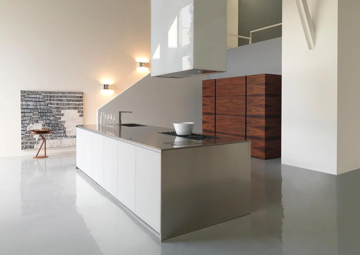 При этом кухня не только красива, но и предельно функциональна благодаря большим секциям и просторной рабочей поверхности, выполненной из акрилового камня. Покрытие из такого камня (кориана) идеально подходит для тех, кто стремится угнаться за модой и одновременно с успехом противостоять течению времени: Corian устойчив к износу, экологически чист и легок в обслуживании. Керлит, который также используется в отделке Twenty, обладает похожими свойствами: он устойчив к воздействию высоких температур, растворителей, дезинфицирующих средств и при этом полностью безопасен в качестве рабочей поверхности для приготовления еды.