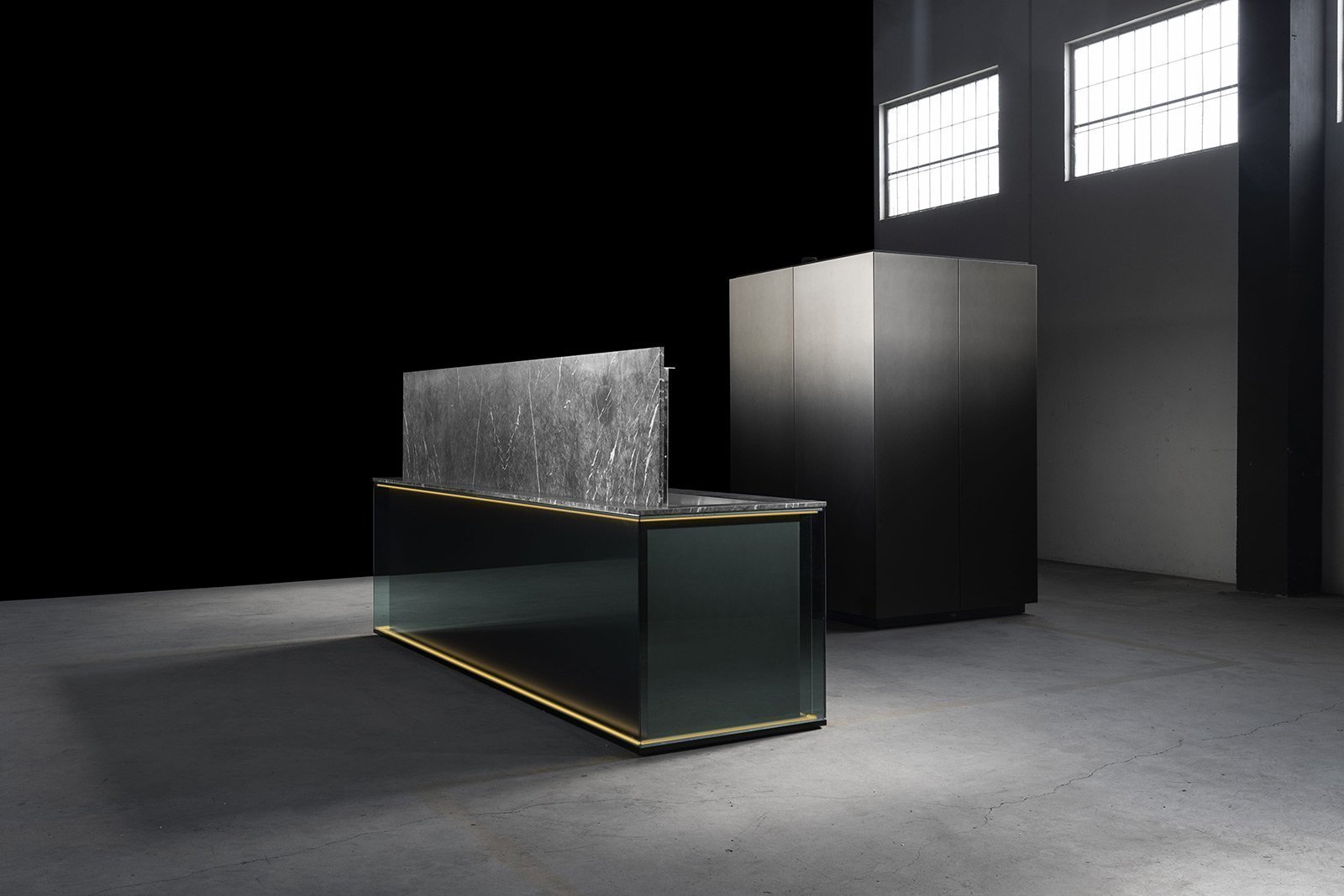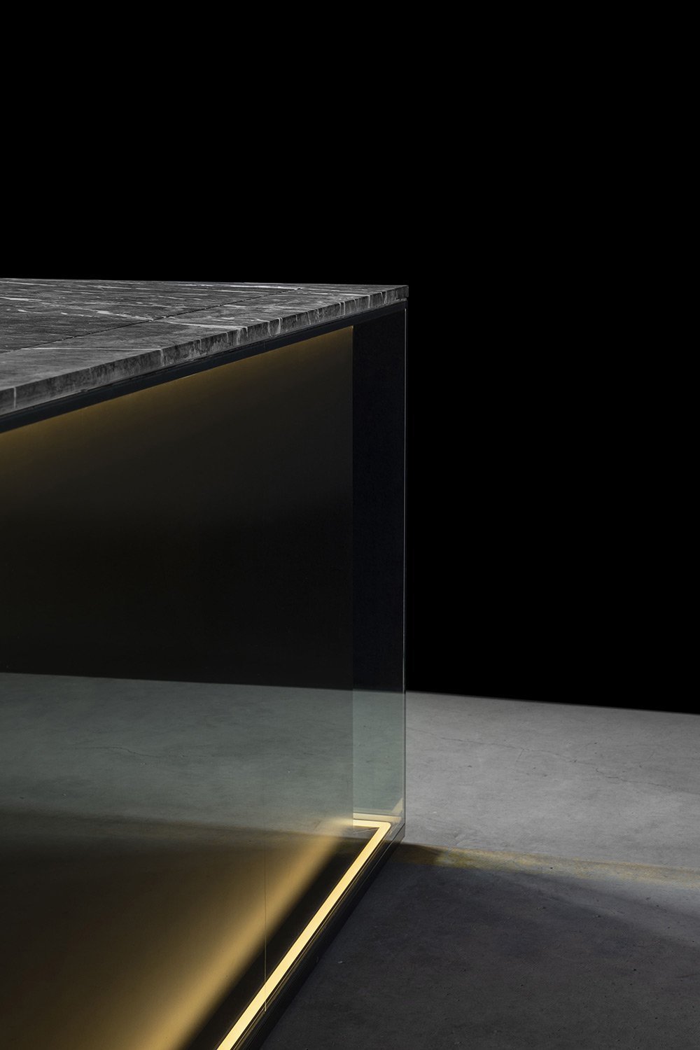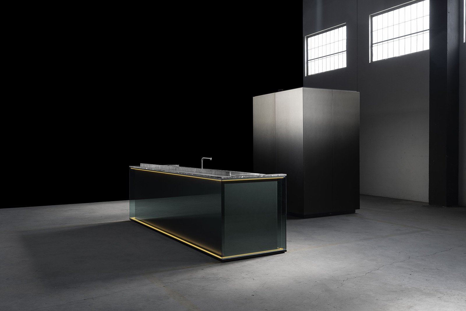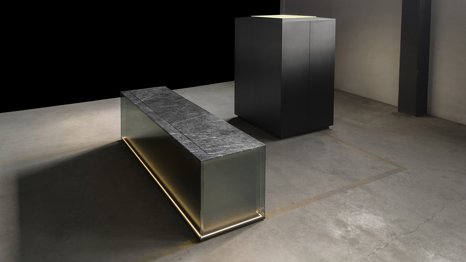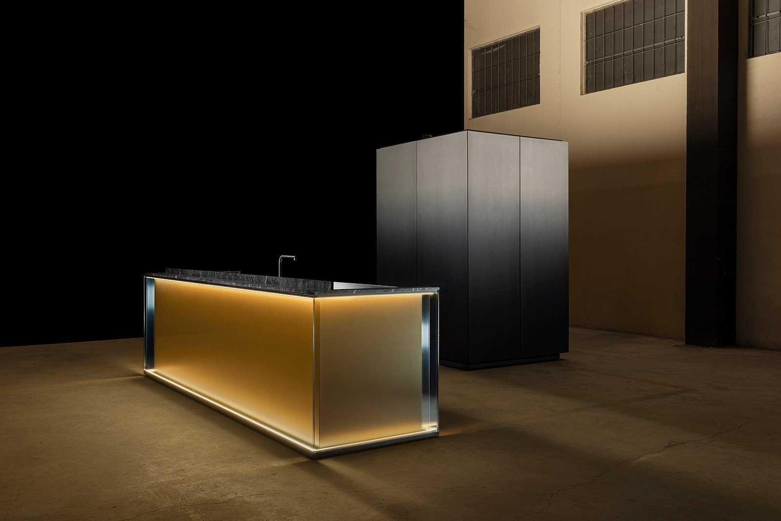 С первого взгляда NU притягивает вниманием к деталям: фасады переливаются, словно драгоценные камни, а мягкая прозрачность материалов делает пространство лёгким и насыщенным одновременно. Когда выдвигаются ящики, внутри загорается мягкий свет, подчёркивающий тёплый оттенок натурального ореха - мелочь, которая сразу ощущается как забота о пользователе.