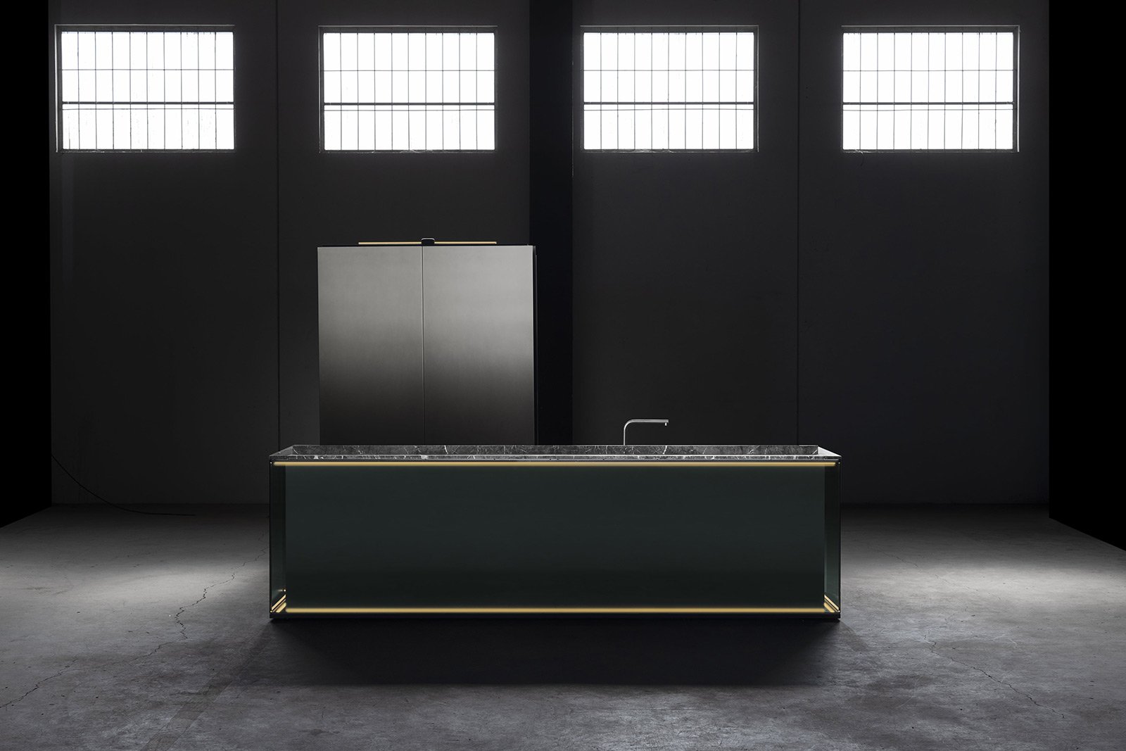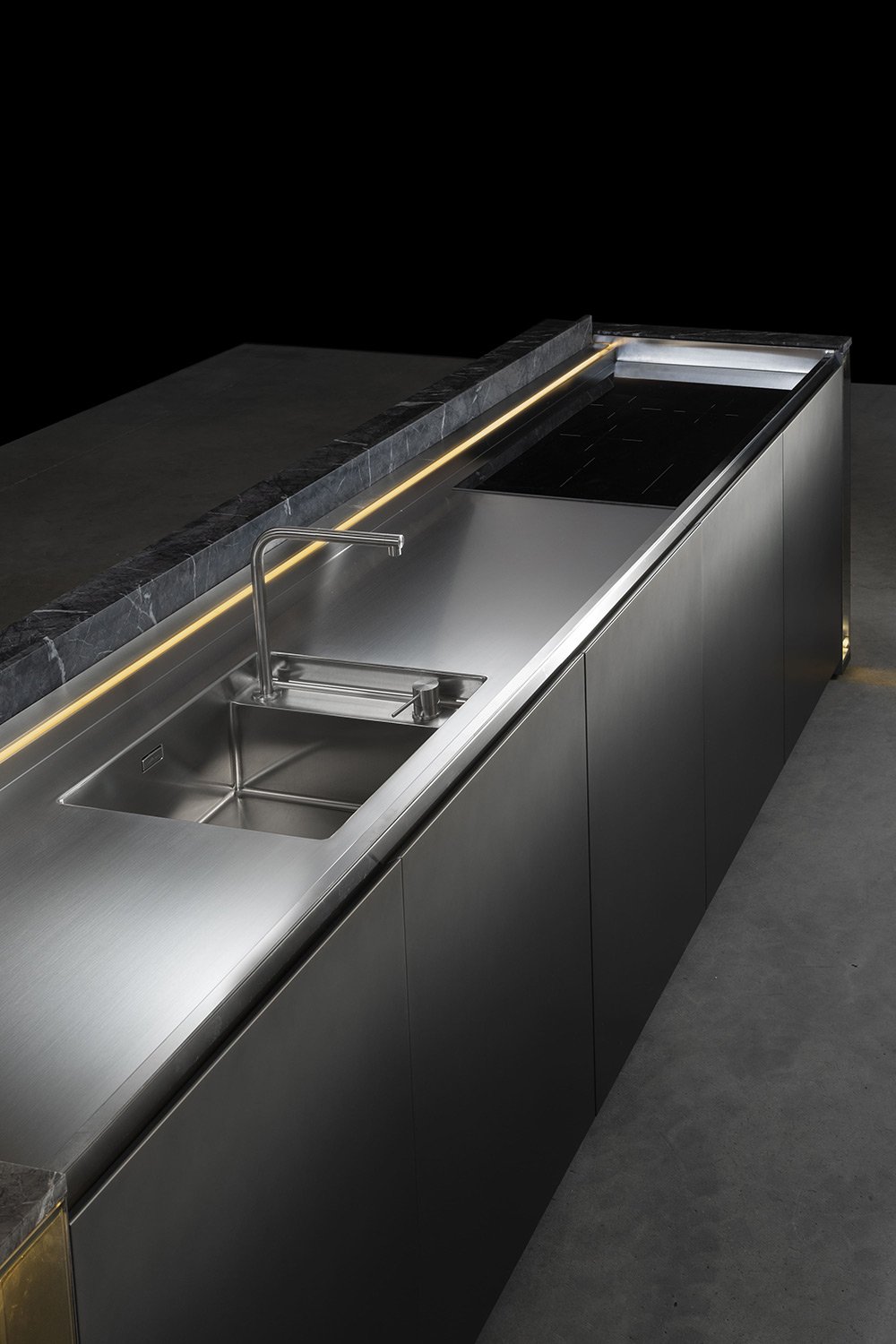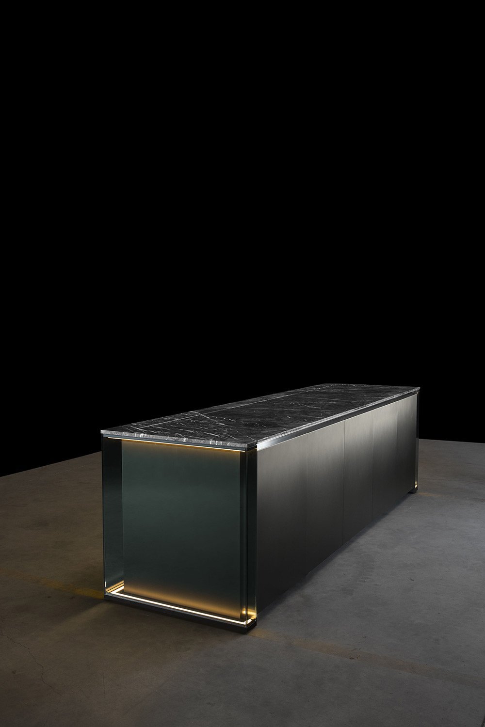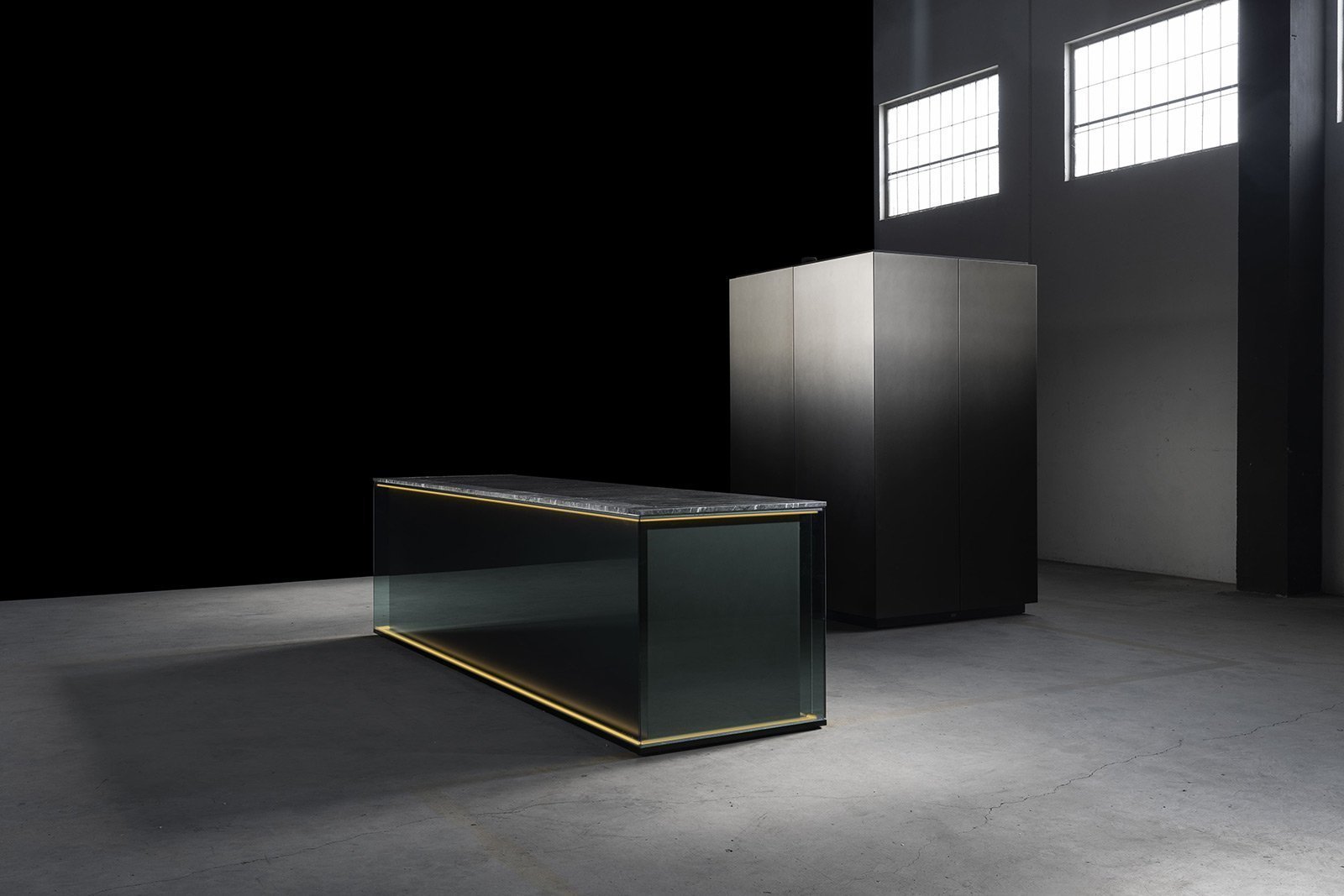 С первого взгляда NU притягивает вниманием к деталям: фасады переливаются, словно драгоценные камни, а мягкая прозрачность материалов делает пространство лёгким и насыщенным одновременно. Когда выдвигаются ящики, внутри загорается мягкий свет, подчёркивающий тёплый оттенок натурального ореха - мелочь, которая сразу ощущается как забота о пользователе.