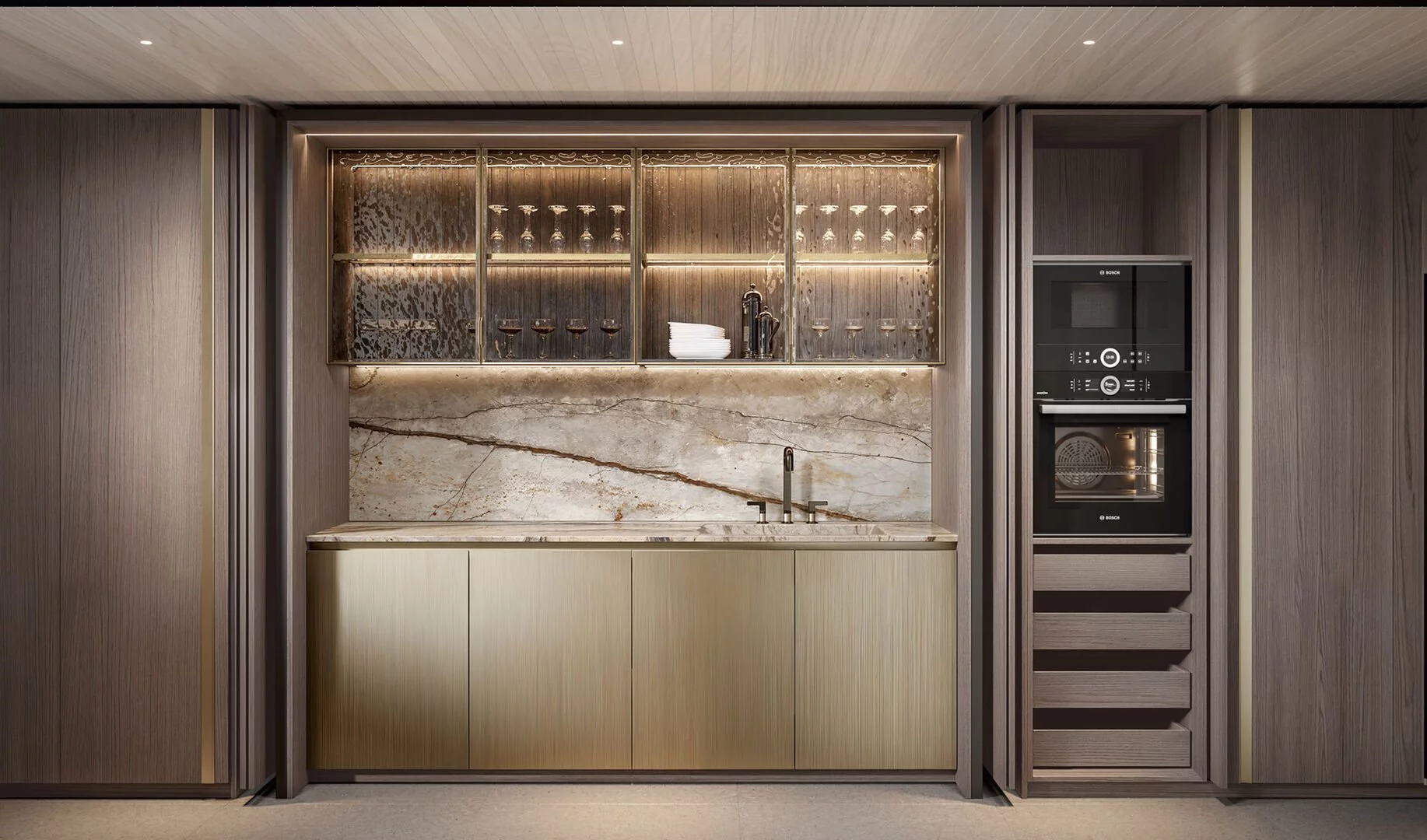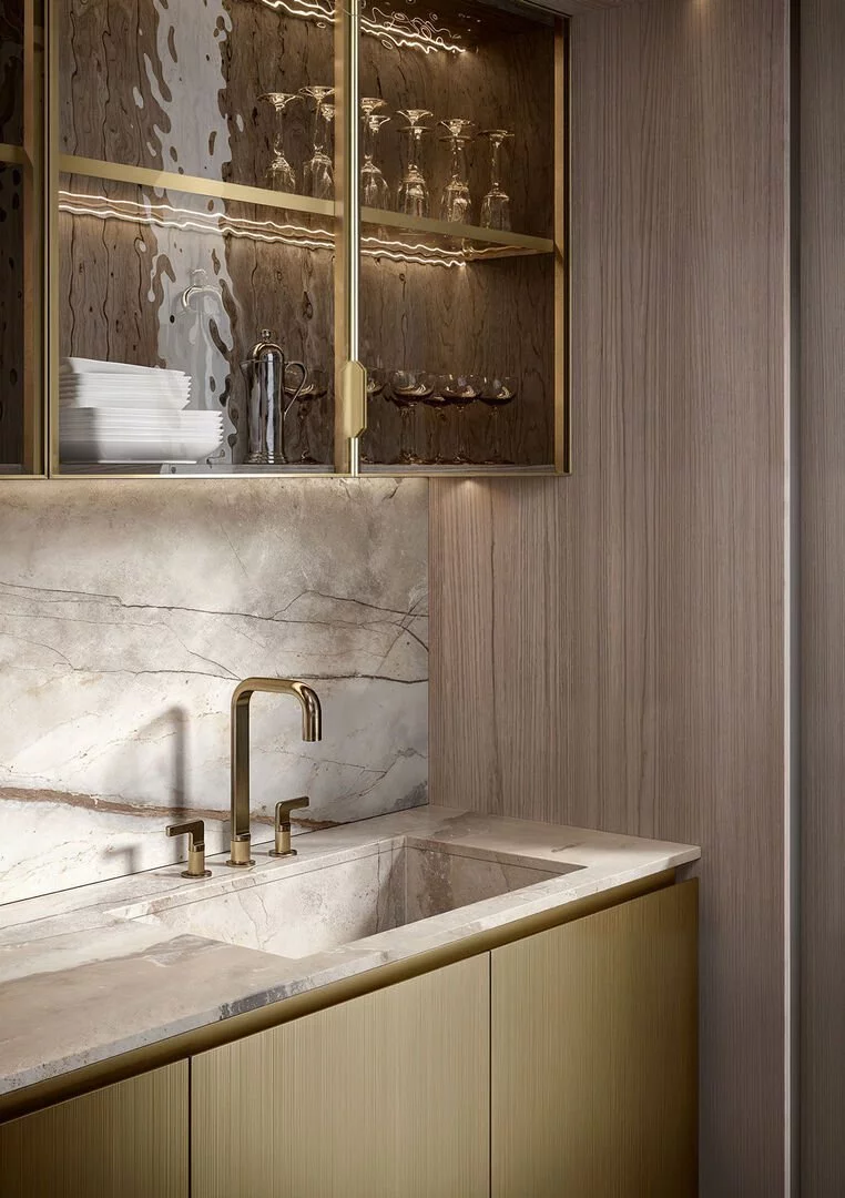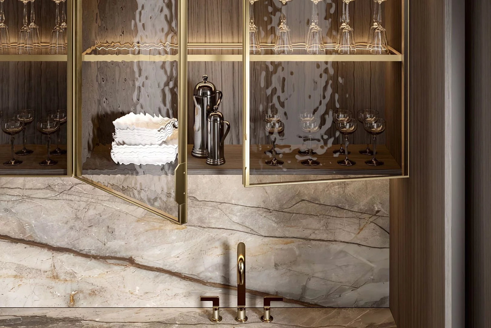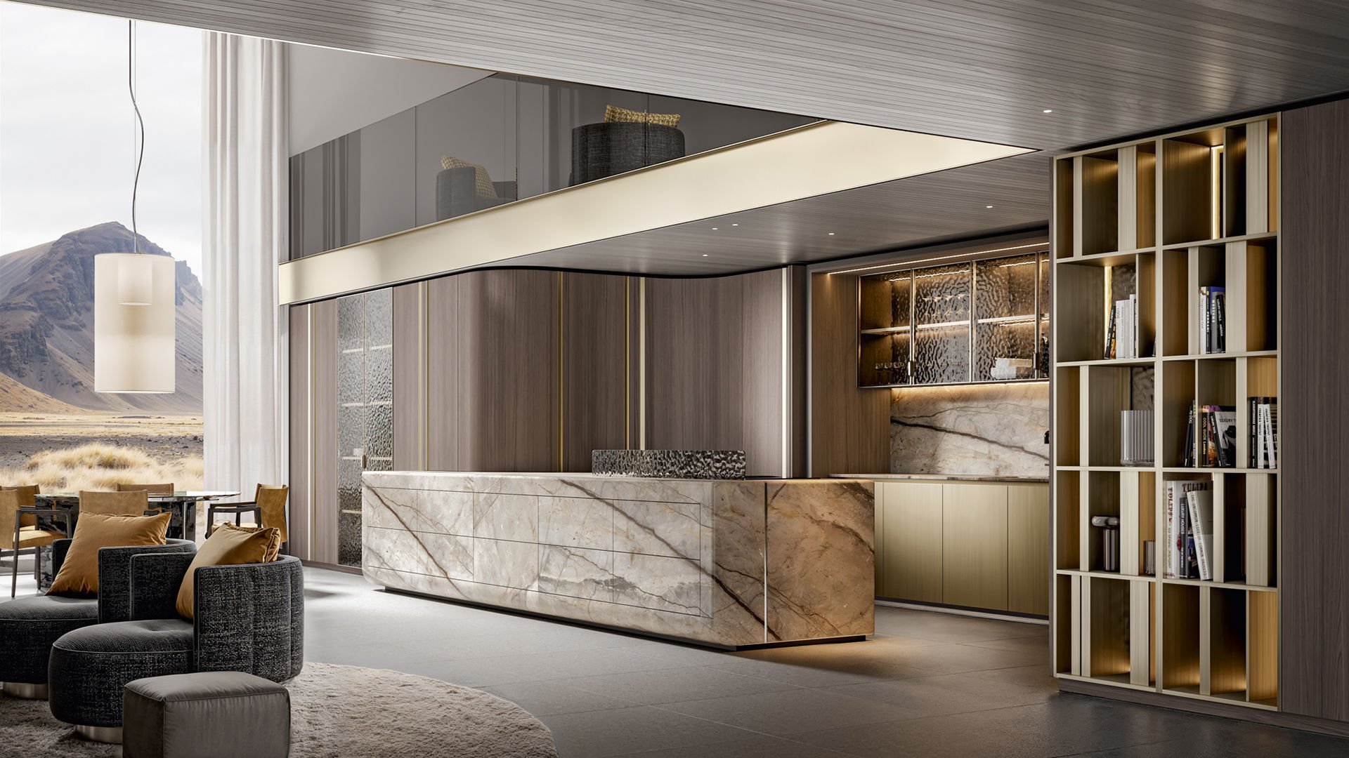Отделка: Stained Oak Nebula, Marmo Silver Roots and Bronzato Rigato