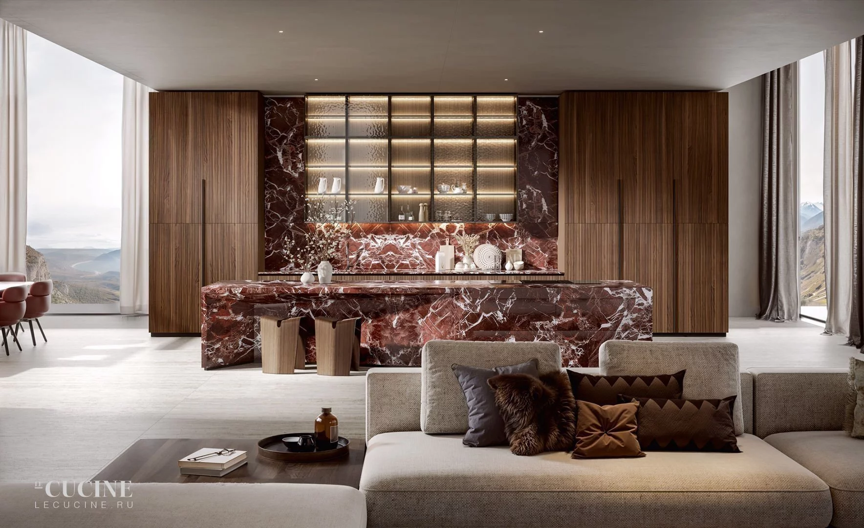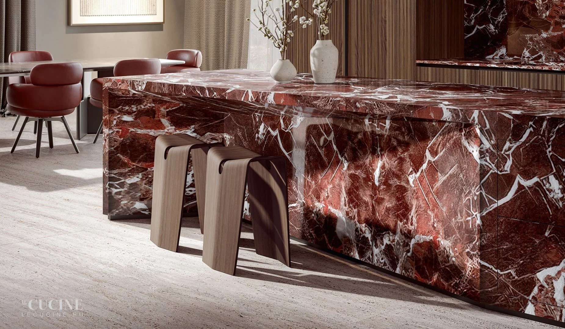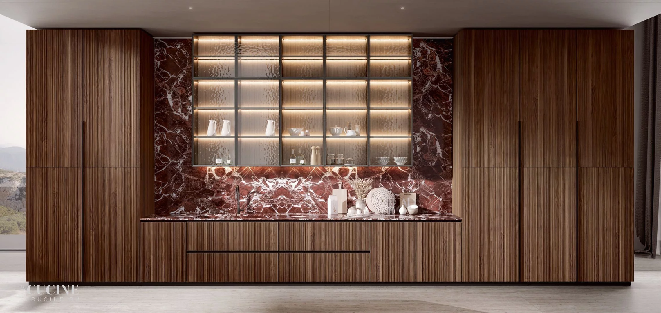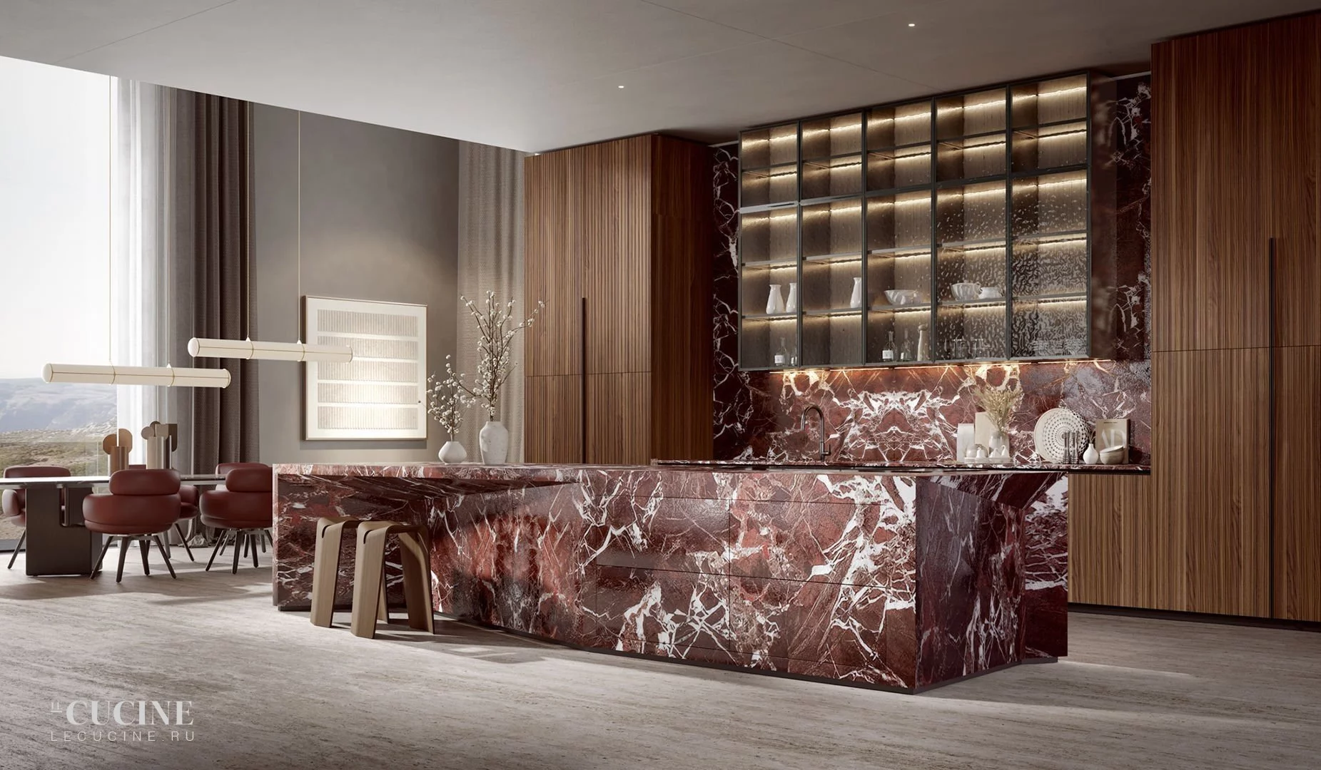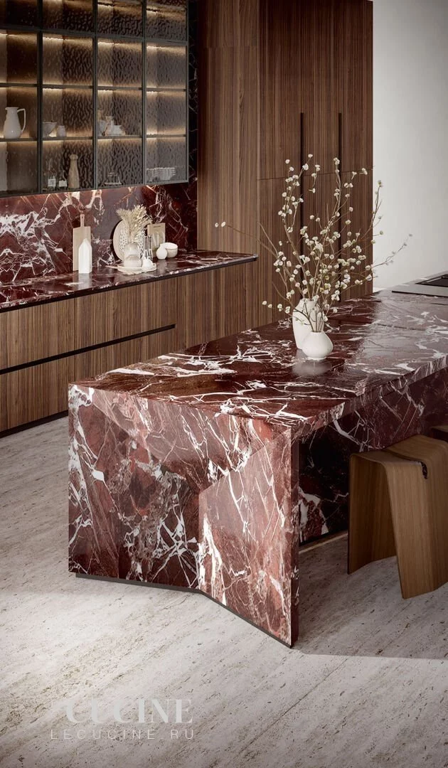 Отделка: Noce Canaletto and Marble Rosso Lepanto