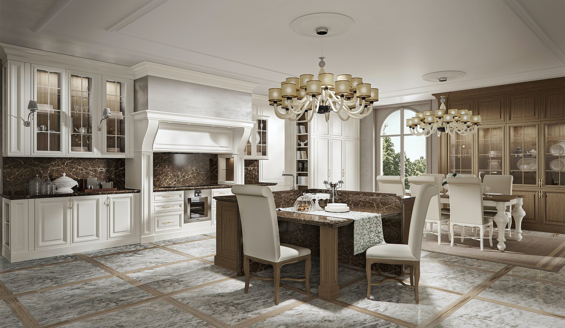 Кухня DEVA - это гармоничное сочетание классического стиля и современного дизайна. Отделка лаком RAL 9001 и тростниковым дубом создают элегантный образ, а рабочая поверхность из мрамора Emperador Brown добавляет роскоши и изысканности. Остров с уютным столом для завтрака станет отличным местом для начала дня или дружеских посиделок за коктейлем. Высокие шкафы с остекленными дверцами добавляют пространства и глубины, а подсветка изнутри создает гармоничную атмосферу и придает кухне гламурный вид. В этой кухне есть все для удобства и комфорта приготовления еды, а также для проведения светских мероприятий.