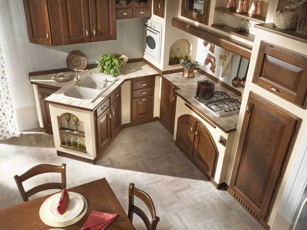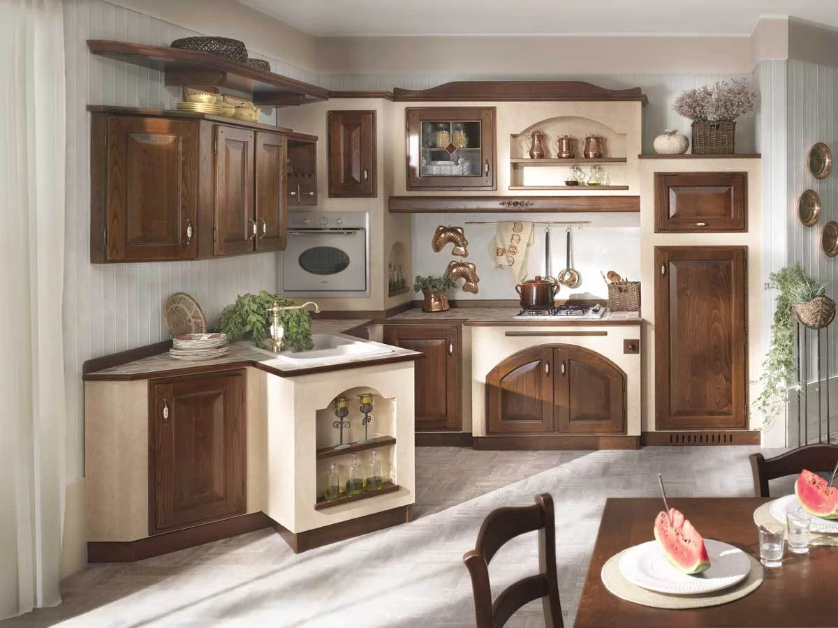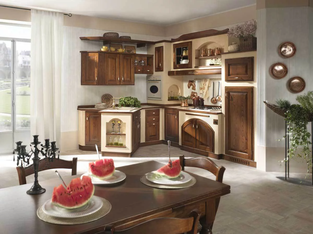 Кухня Amelie от итальянской фабрики Onlywood — это образец истинной классики в стиле кантри с изящными элементами. Данная модель даёт возможность построения мебели различными способами: прямолинейно и под разнообразными углами, с возведением традиционных печей, открытых полок, декоративных ниш. Фасады изготовляются по старинной технологии с применением деревянных крепежей.