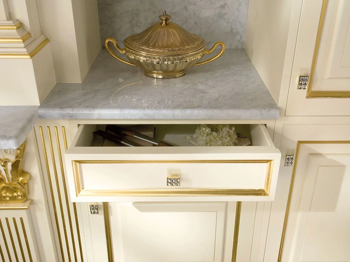 Свежесть и лёгкость в интерьер вашего дома внесёт классическая кухня Sofia от итальянского производителя Onlywood. Эта модель, выполненная в стиле ампир, восхищает вытяжкой-портиком, шикарными колоннами и великолепными пилястрами с резными капителями, а также строгими линиями фасада. Материал — массив натуральной древесины дорогих сортов. Возможен вариант покраски фасадов в различные цвета или тонирования под орех. В качестве декора используется патина и отделка серебром или золотом, с кантом в дополнительном цвете. Модульные элементы изготавливаются по индивидуальным размерам заказчика. Также фабрика Onlywood предлагает несколько вариантов фурнитуры, в том числе и ручек.