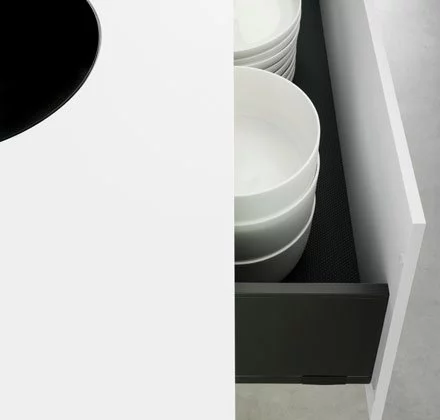Таинственная незнакомка, модель Minimal является эталоном минималистичекой современной кухни. Прикоснитесь к шкафчикам и вы почувствуете лёгкость использования выдвижных механизмов и контрастный чёрный тон, скрытый за белоснежными фасадами.