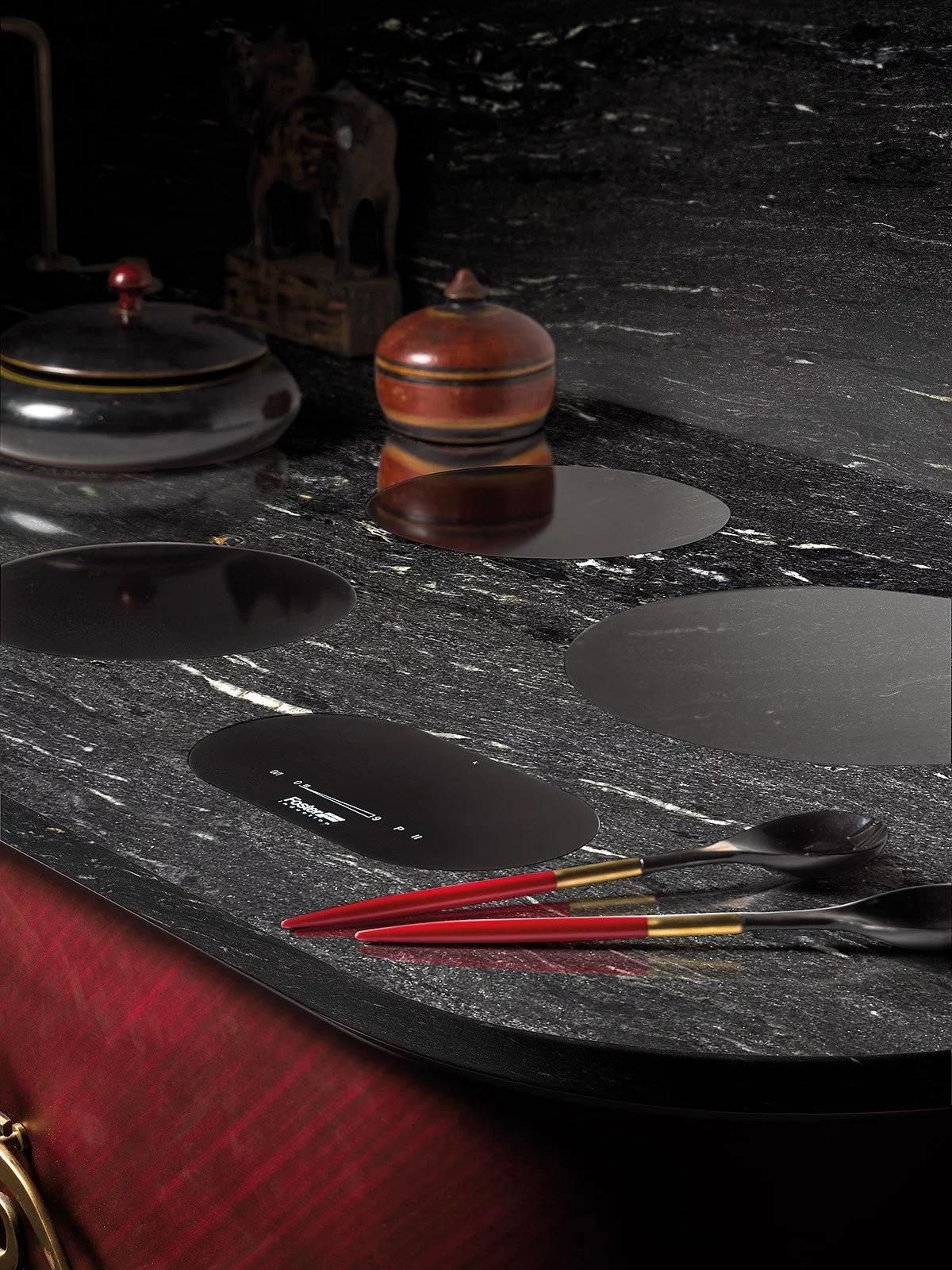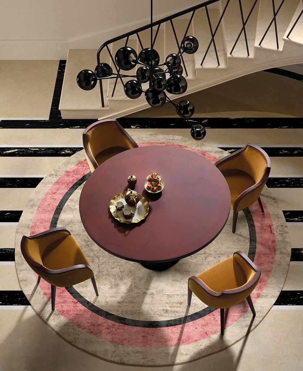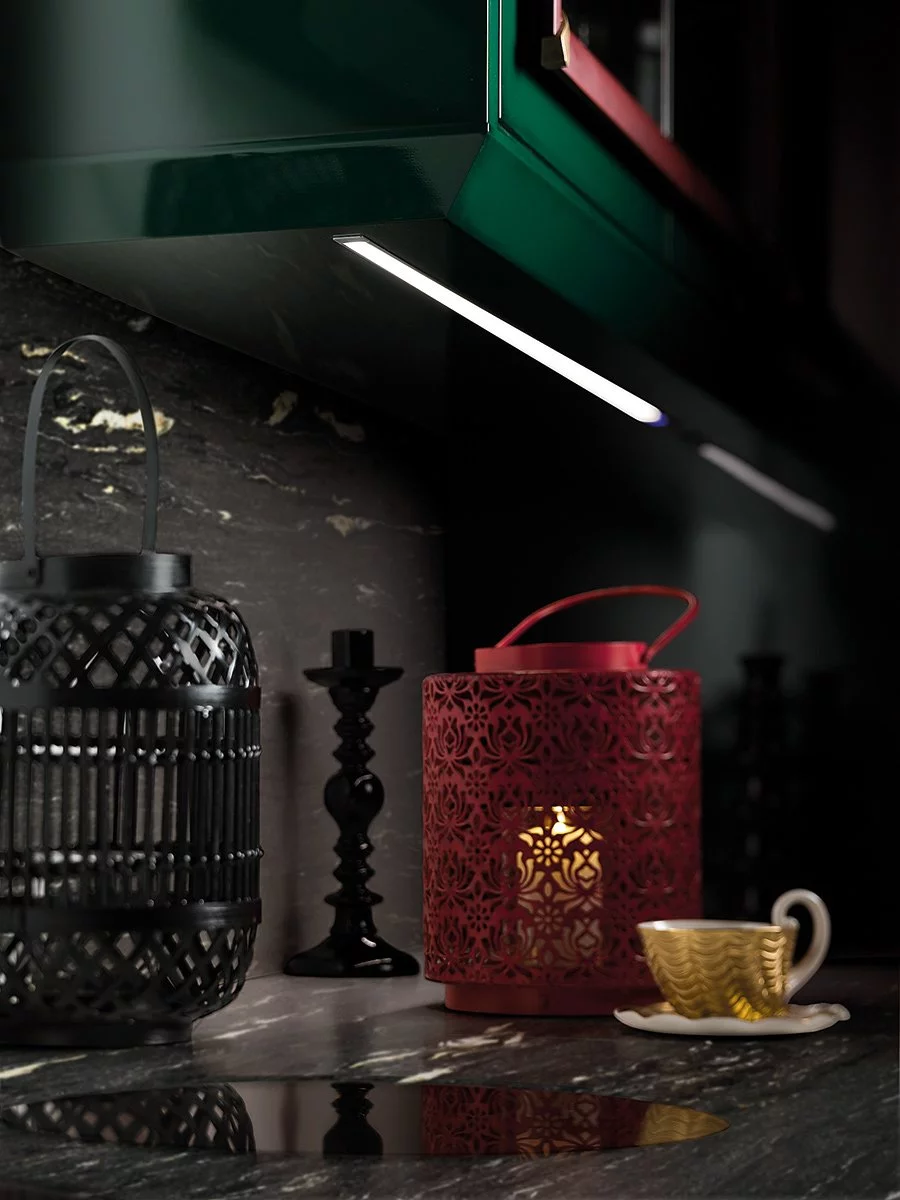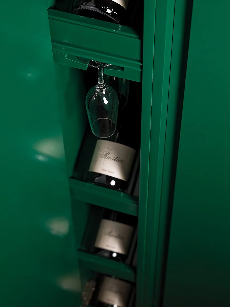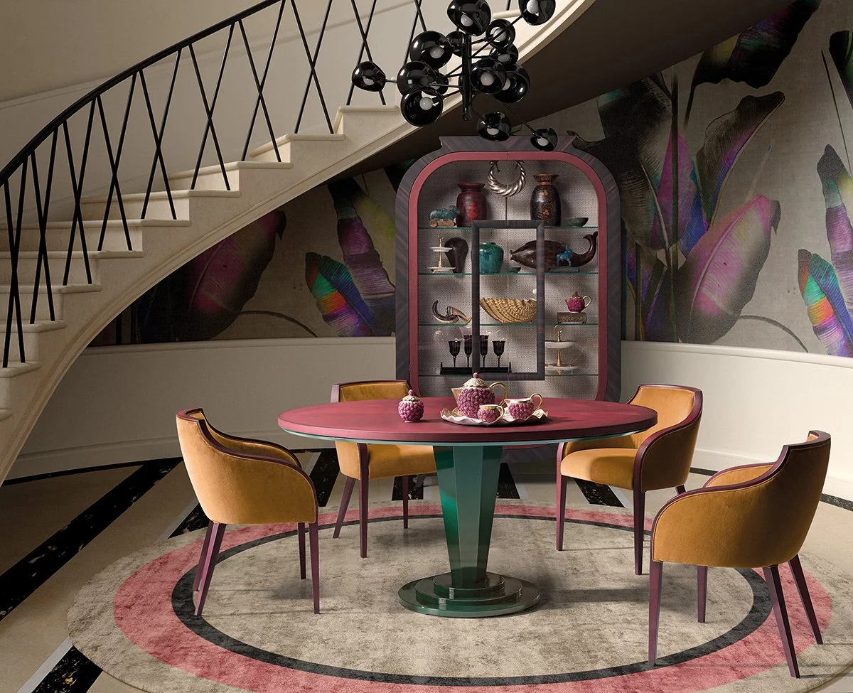 Кухня Gran Duca от итальянской фабрики Prestige стала олицетворением американского арт-деко, где сочетается функциональность, инновации, а также изысканные объёмы, чёткие линии, дорогие материалы и покрытия. Модель отличается яркими контрастными цветами — изумруд и винный оттенок с проглядывающейся текстурой дерева.