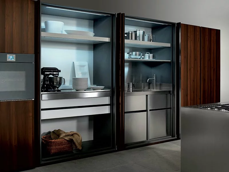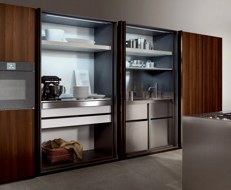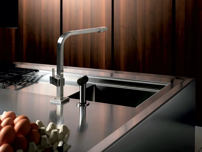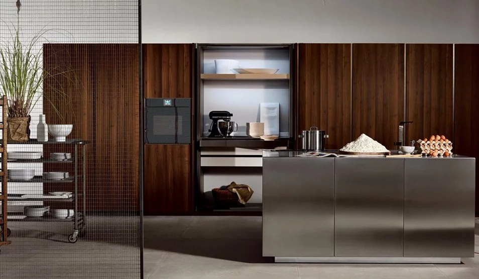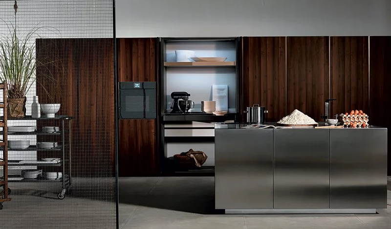 Кухня Ht50 фабрики Rossana — оригинальная кухня с использованием нескольких контрастных цветов. Элегантный дизайн стиля минимализм. Гладкие поверхности строгих геометрических форм, переходящие в углубление рабочей зоны, имеющей естественный рисунок дерева.