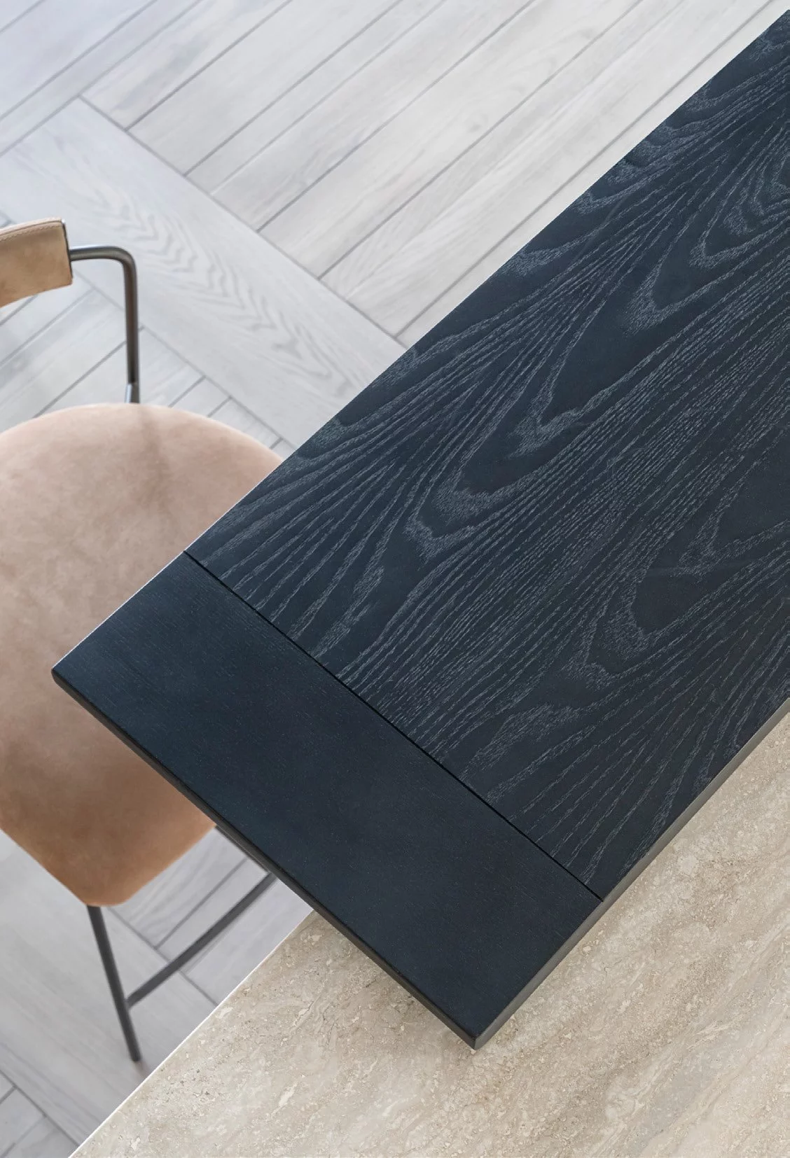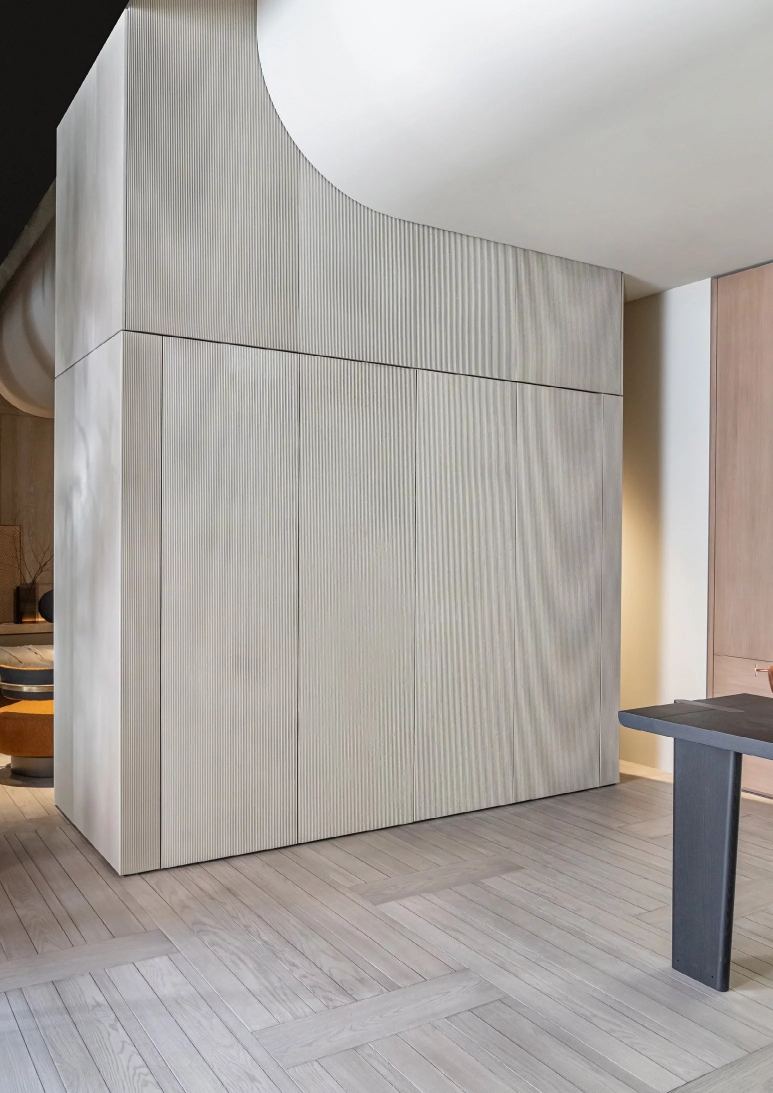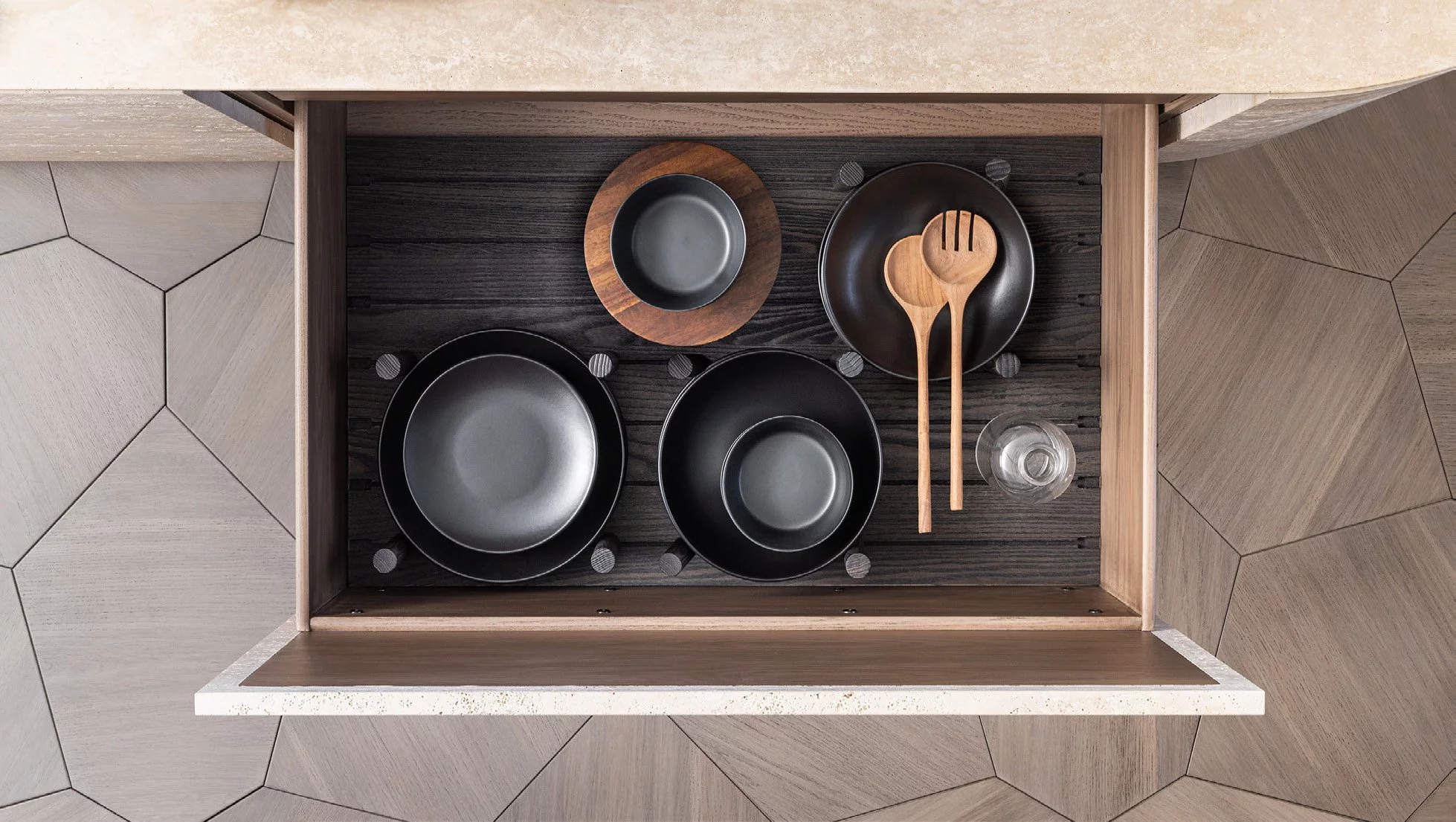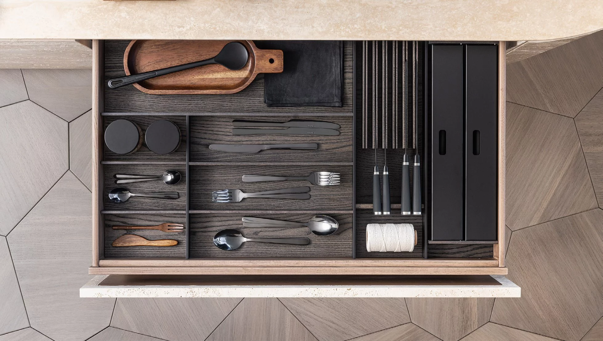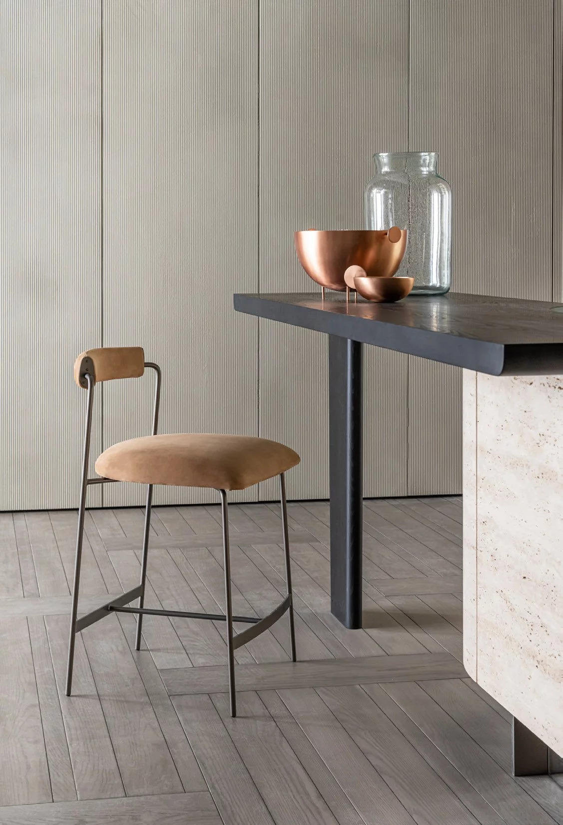 Кухня Vogue представляет собой воплощение гармонии между функциональностью и эстетикой, современным стилем и уютом, изысканностью и строгостью. В создании этой кухни бренд Shake поднимает планку дизайна на новый уровень, переосмысливая и творчески преображая материалы, технологии и формы. Высокие шкафы из дерева T158 в оттенке бискотто впечатляют своей изысканностью, а витрины с металлической рамой и прозрачным стеклом добавляют современный шик. Напольные базы, также выполненные из дерева T158 бискотто, обеспечивают не только функциональность, но и элегантность пространства. Подвесные ящики с раздвижными дверцами, обитые мрамором Травертин полосатым, добавляют штрих утонченного роскоши, создавая впечатляющий ансамбль, который впишется в любой современный интерьер.