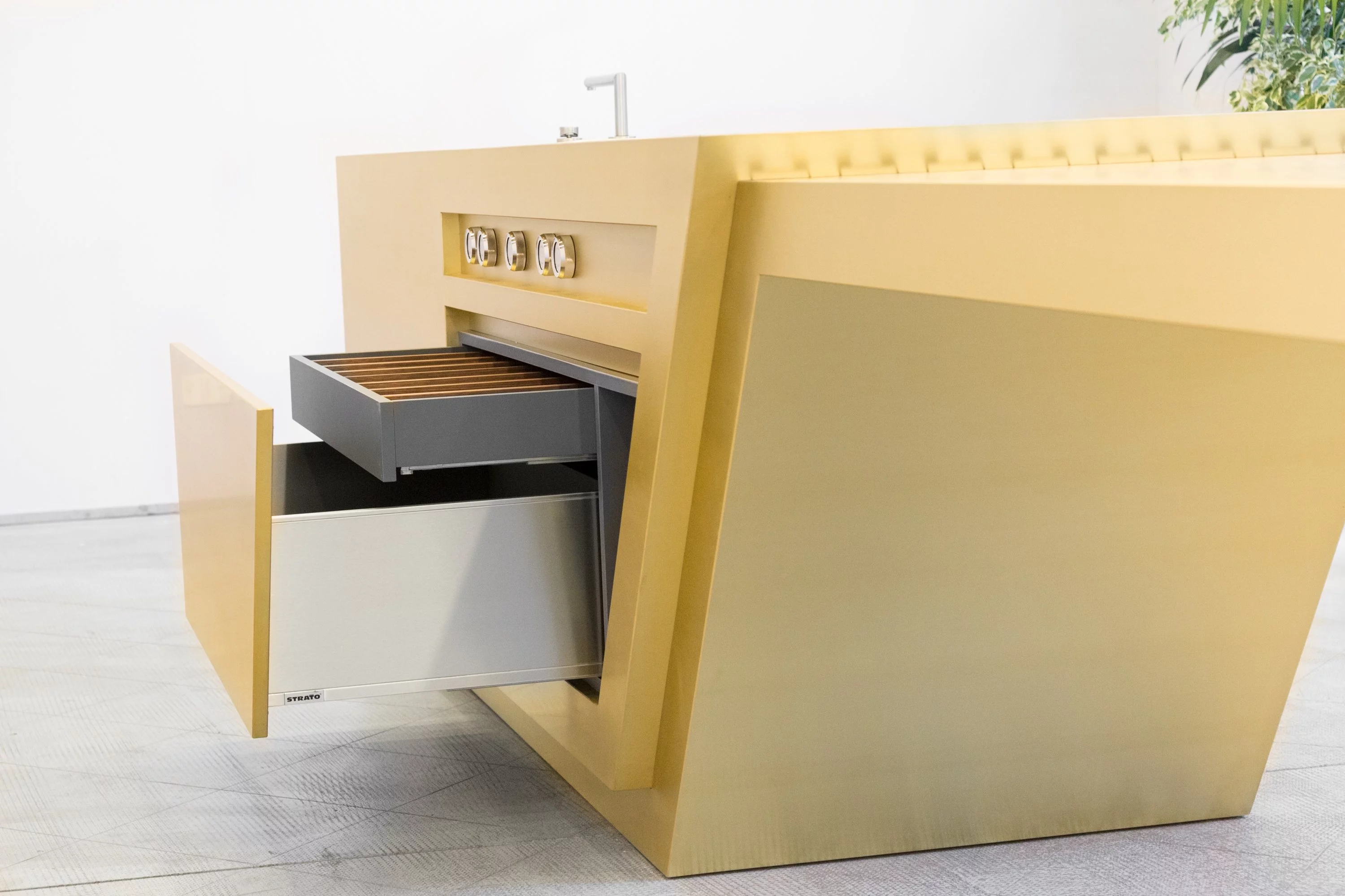 Хотите уникальный дизайн кухни? Надоели привычные цветовые решения? Кухня Strato Uniqueness от известного бренда Strato станет для вас настоящим открытием! Согласитесь, такой инновационный дизайн не каждый день можно встретить. Несмотря на то, что остров кажется слишком компактным, в нём имеются выдвижные ящики, где можно хранить самые необходимые кухонные аксессуары.
