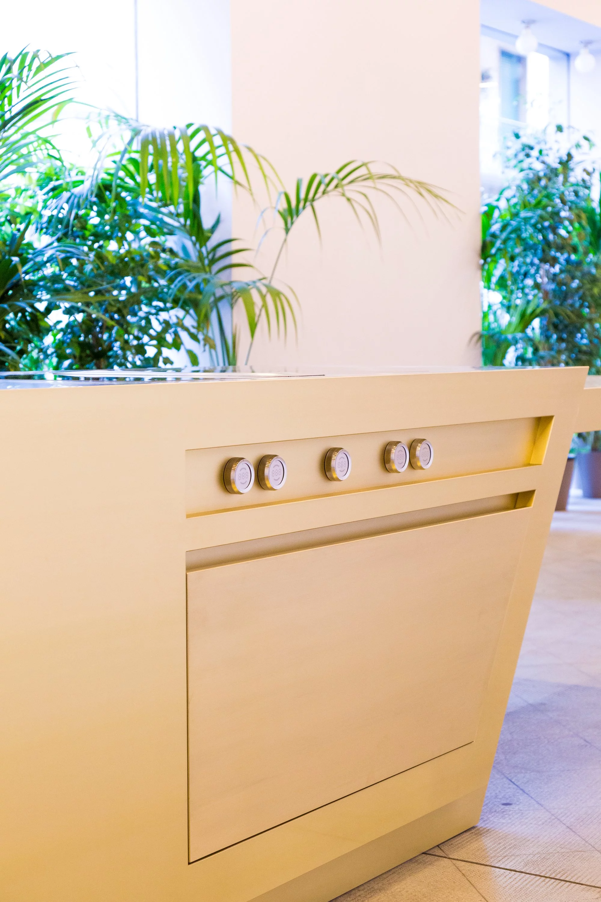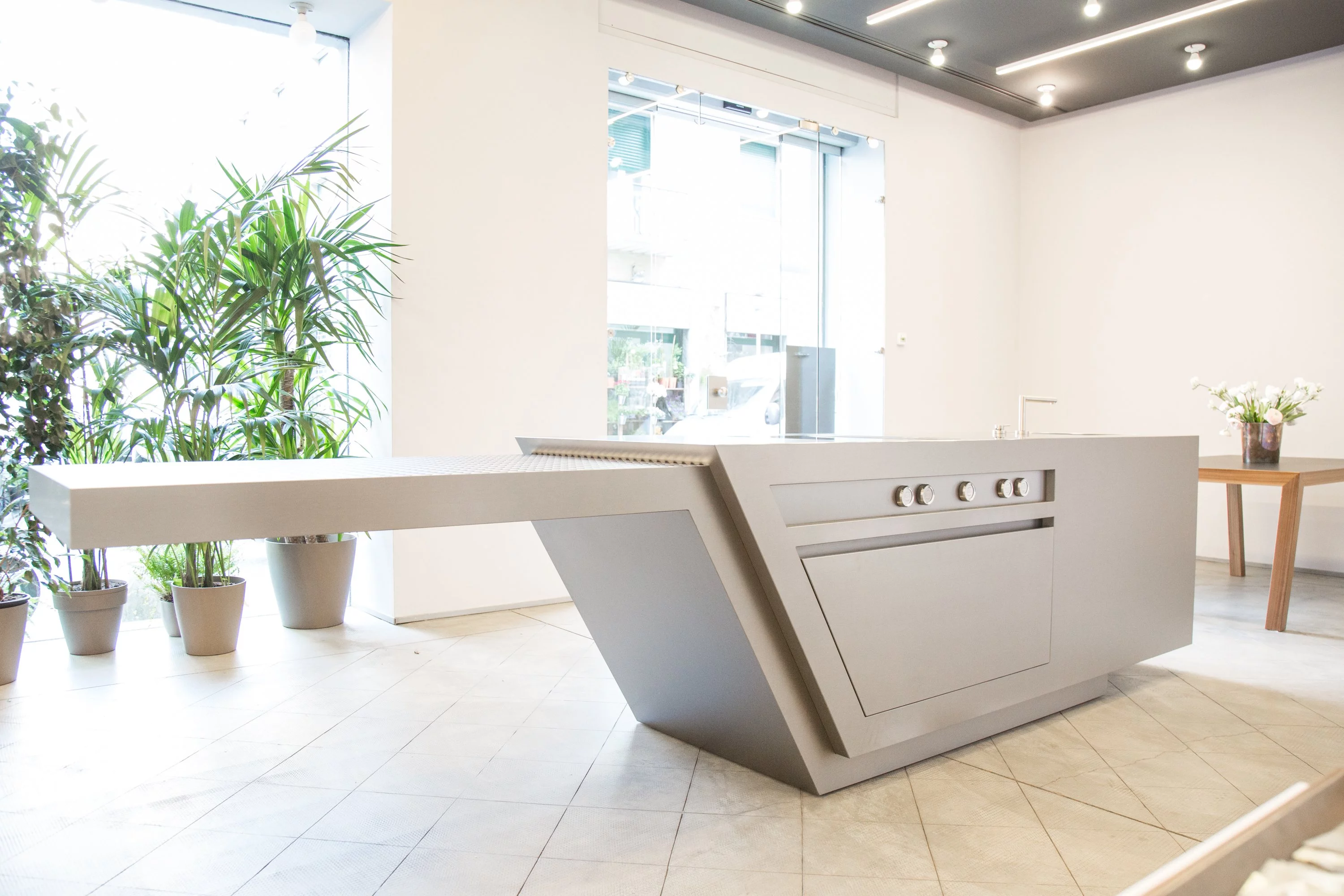 Кухня Strato Uniqueness представлена в виде отдельно стоящего острова и представлена в двух цветовых решениях: белом и жёлтом. Также в комплектацию изделия может входить круглый обеденный стол. При изготовлении модели использовался металл, дерево и МДФ.