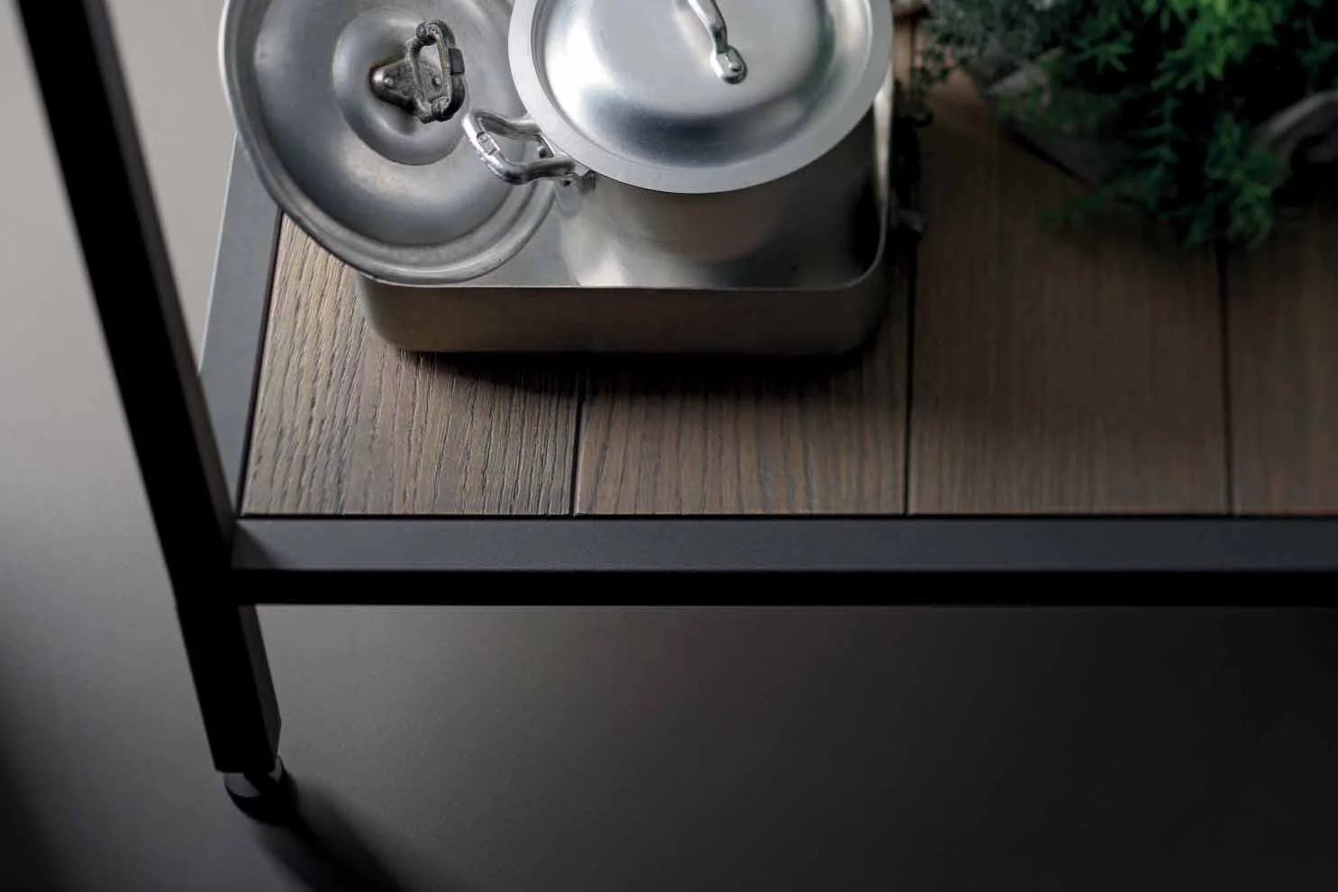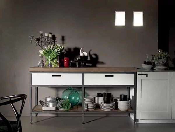 Система подвесных шкафчиков, эргономичная рабочая зона, отдельный стол-этажерка позволяют разумно распределить кухонные аксессуары, позволяя им находиться «под рукой» во время приготовления блюда. Проектировщики Progetto 06 использовали в изделии несколько цветовых гамм, которые органично дополняют друг друга.