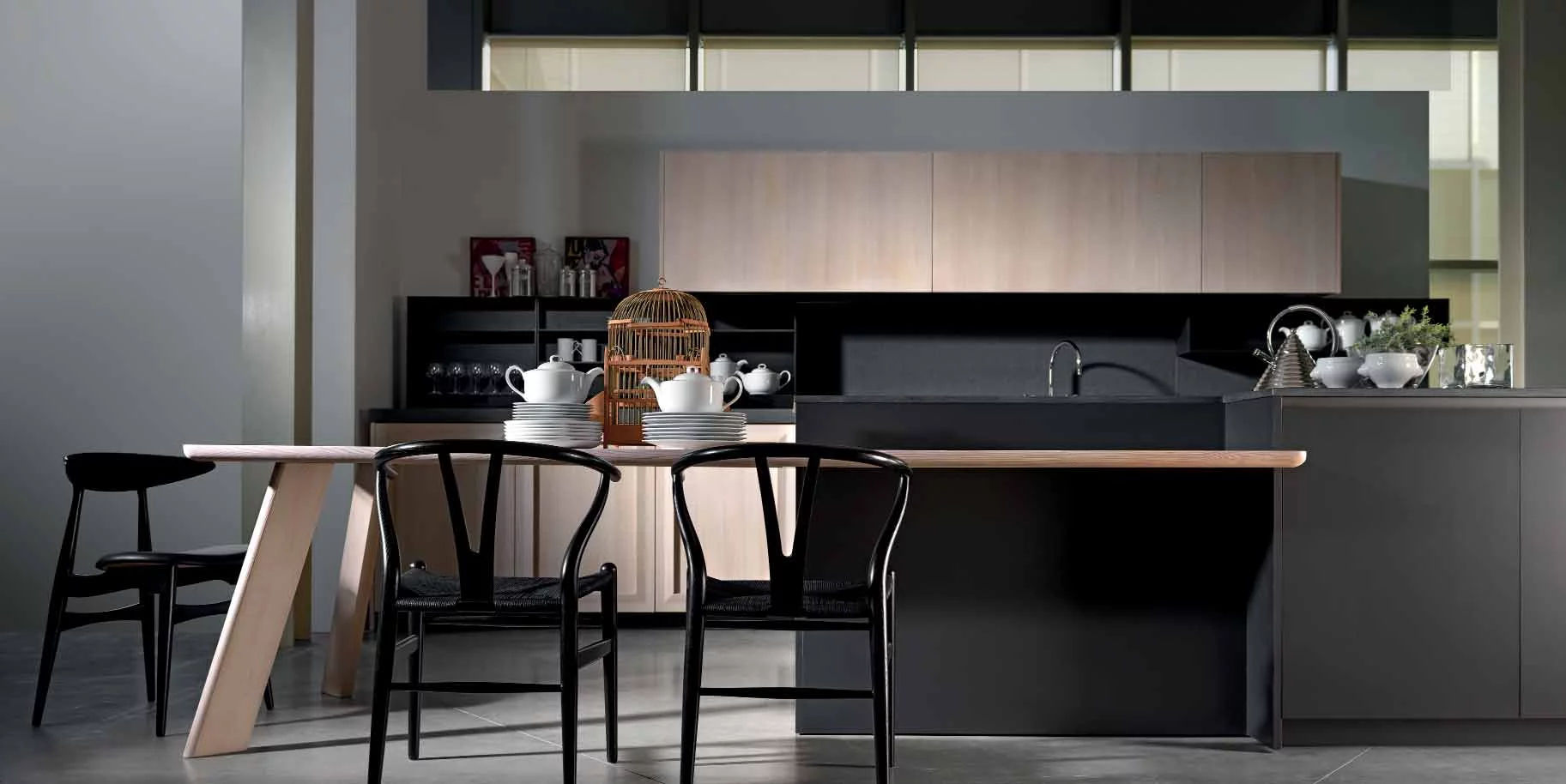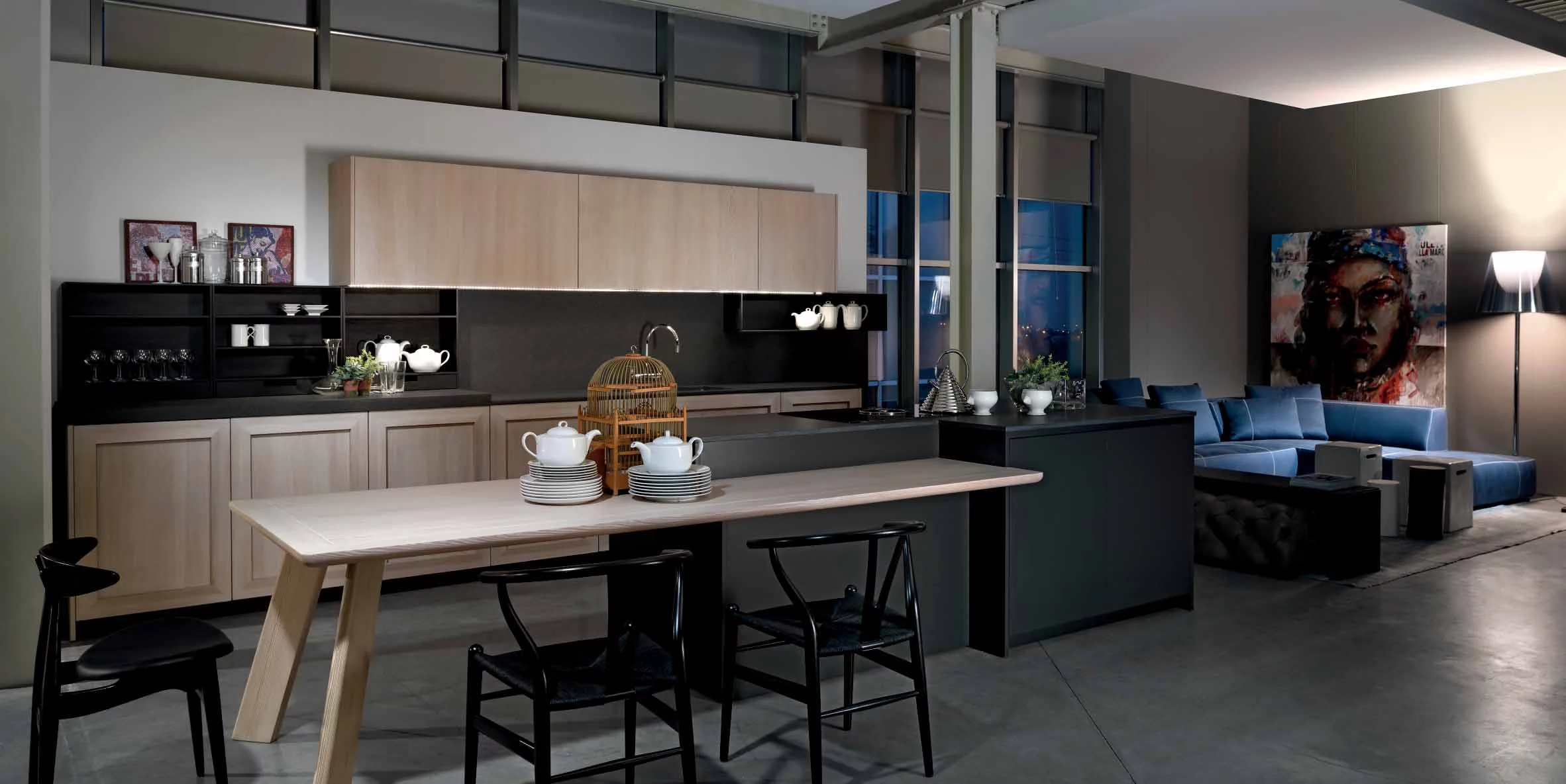 Элегантная и загадочная кухня Progetto 07 обладает притягательным «мужским» характером, от которого веет непреодолимой харизмой. Невероятно шикарное сочетание светлой древесины и тёмного острова стало главной «изюминкой» проекта, которая говорит о хорошем вкусе его хозяина.
