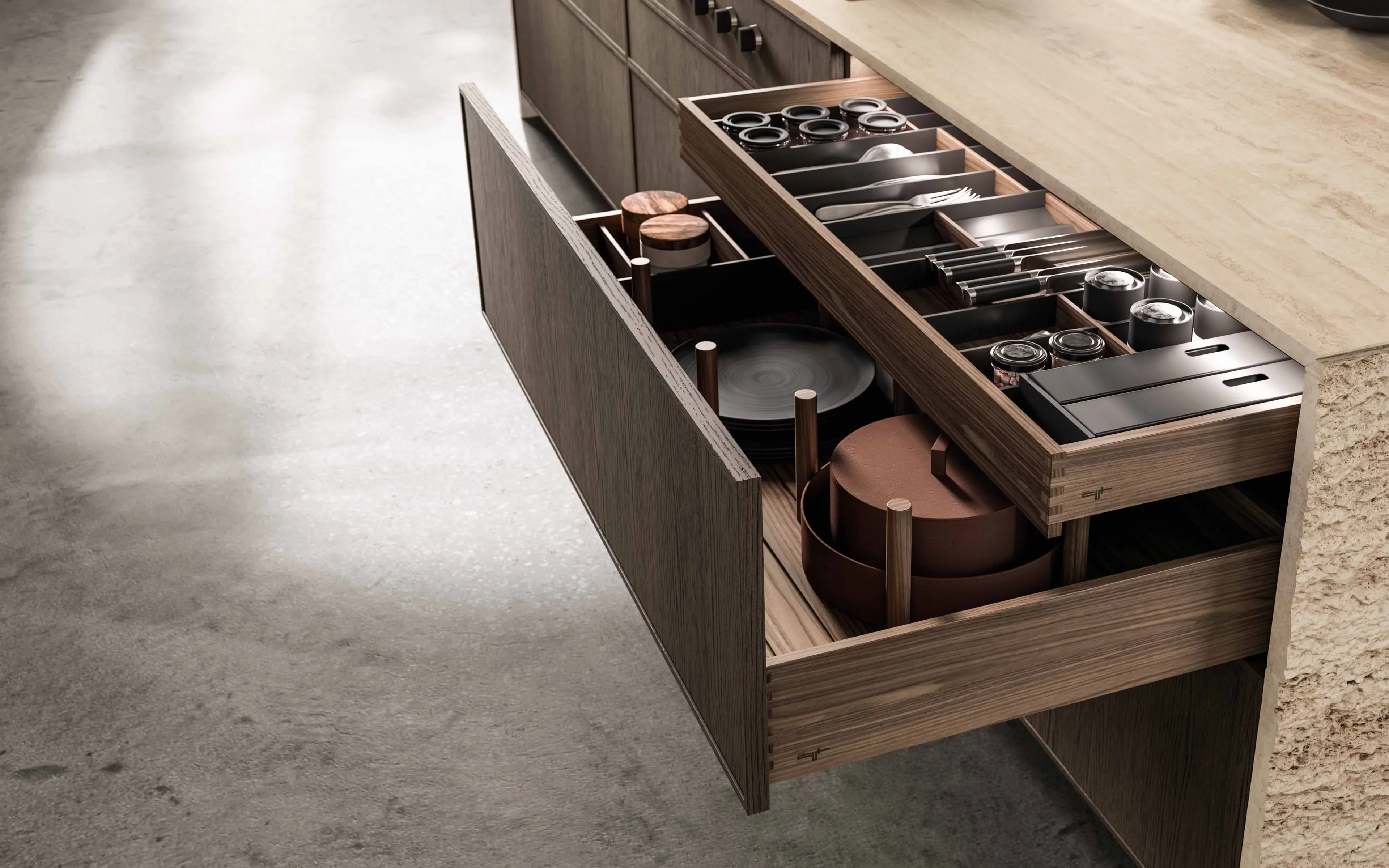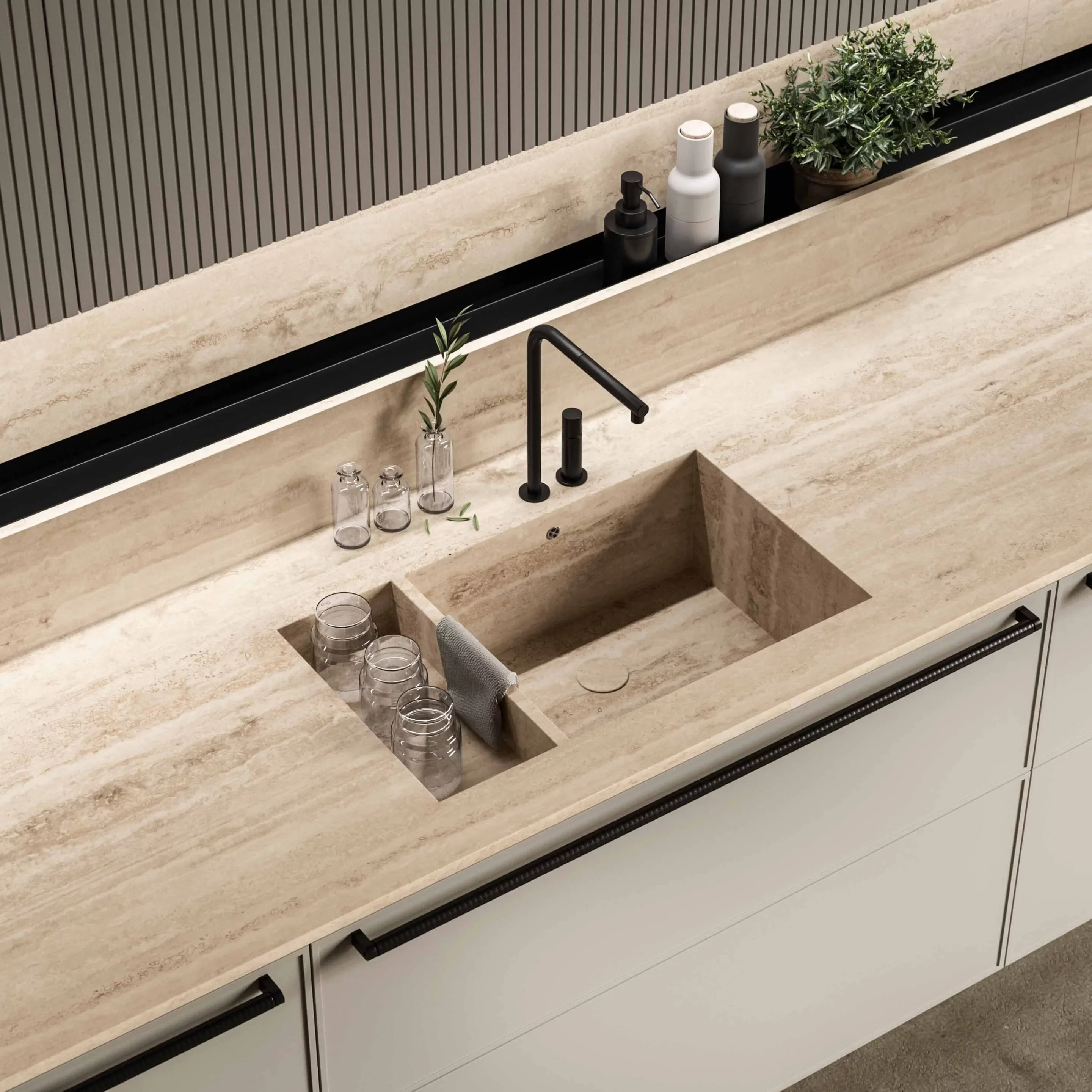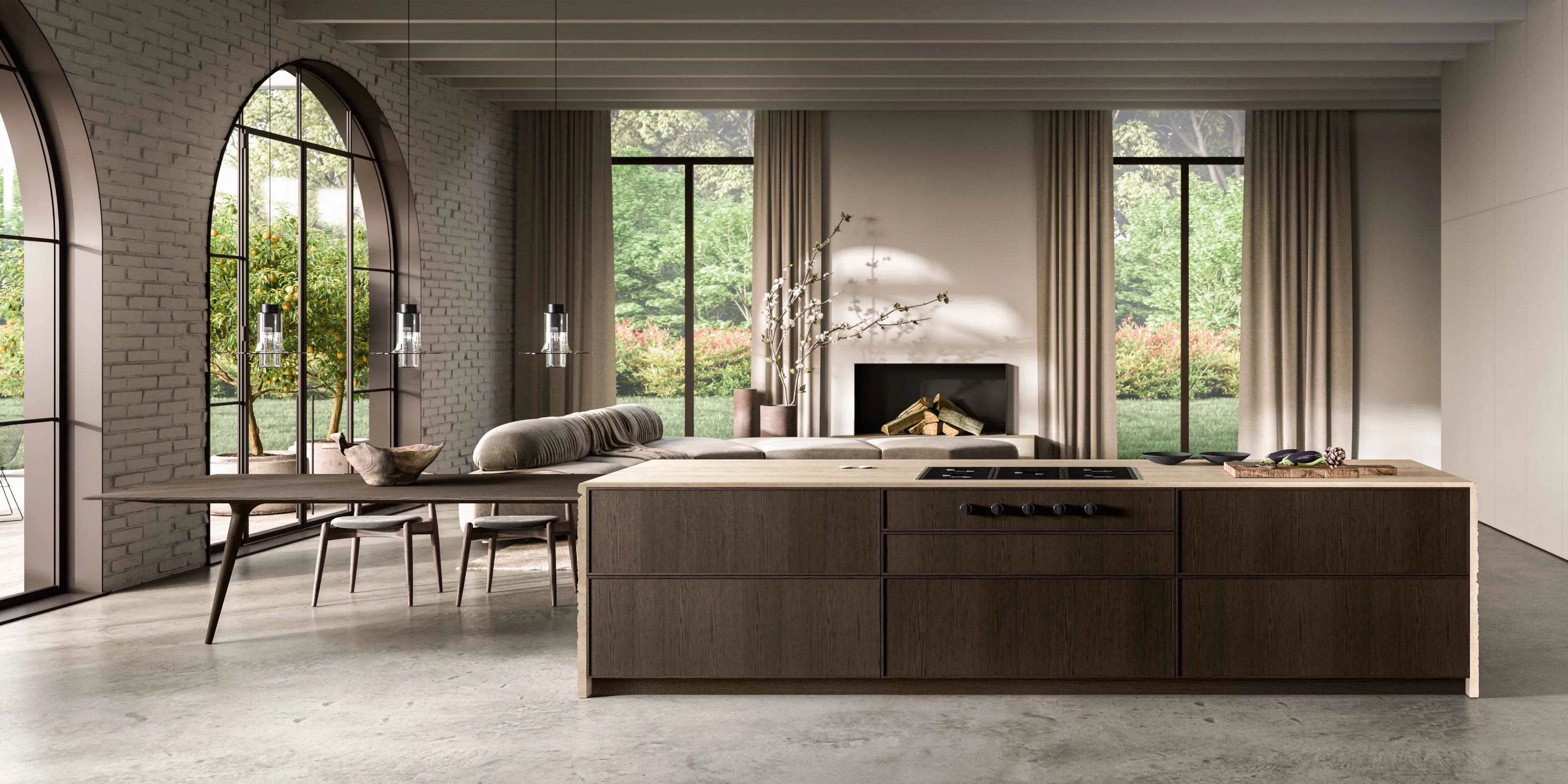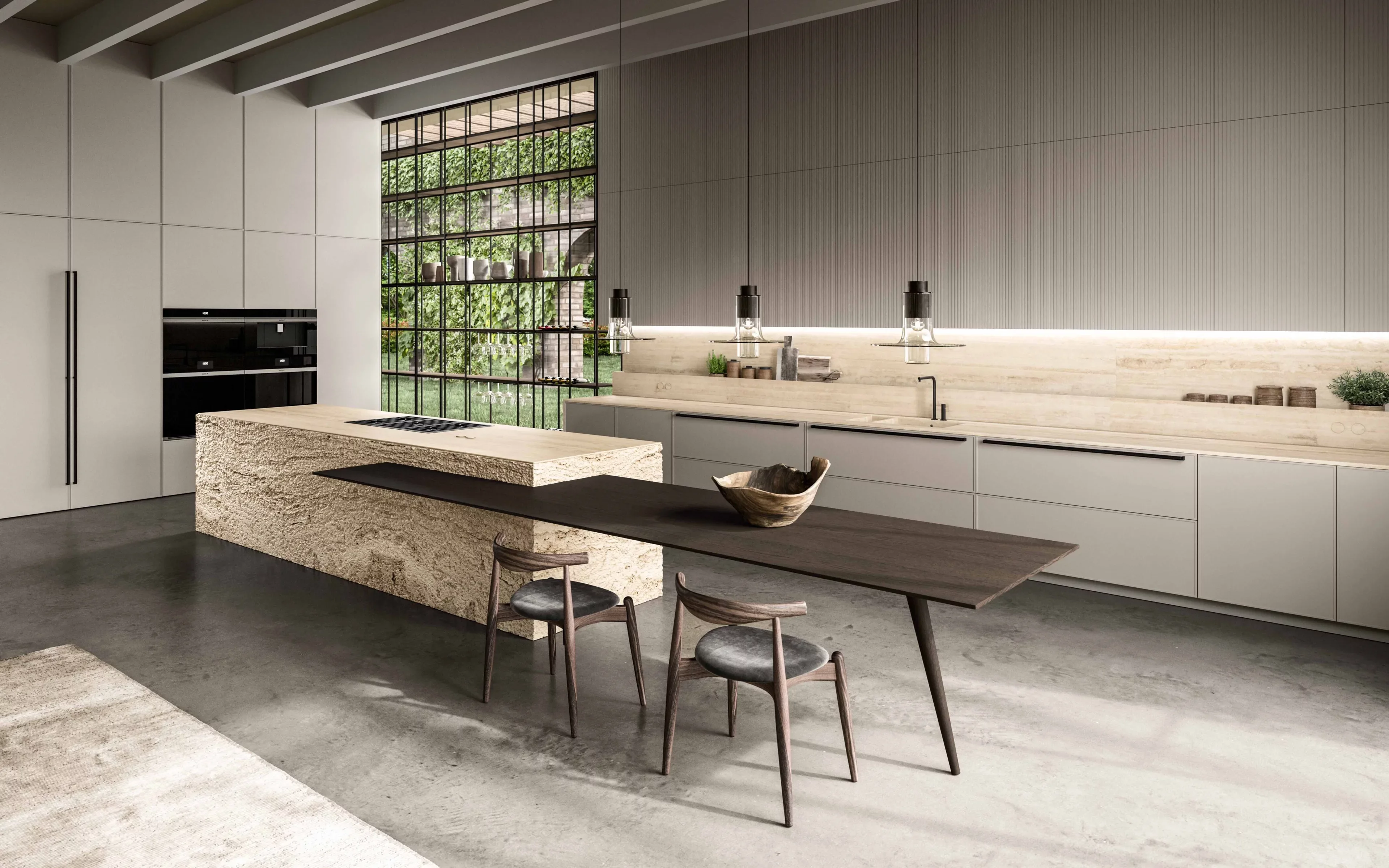 Кухня Vitae - это когда вдохновение рождается в переходах, в новых местах, где чувство разделения сливается с универсальными пространствами отношений и благополучия. Здесь, в поисках дисциплины и линейности форм, мы находим бесконечную модульность, тонкую интерпретацию современного образа жизни — легкого, гармоничного, оставляющего пространство для воображения и свободы. Этот концепт не ограничивается кухней; он простирается на все сферы жизни, внутри и снаружи, где природа тесно переплетается с повседневной рутиной. Детали выделяются натуральными материалами, словно камень и дерево, создавая универсальный стиль, который одновременно играет, скрывает и раскрывает свои многогранные аспекты. Это пространства, наполненные жизненным опытом, передающие живой дизайн, пронизанный эмоциями