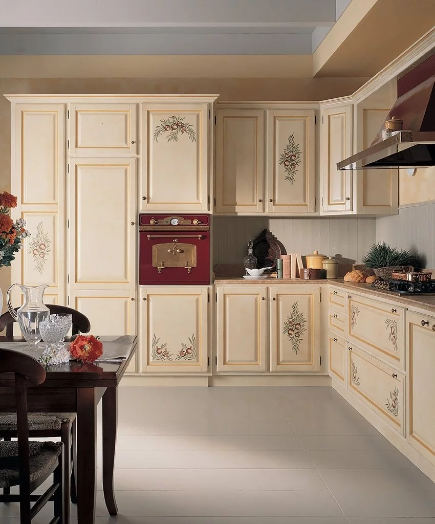 Угловая классическая кухня Amabileот итальянского бренда Tiferno Mobili представлена с рустованными дверцами. Эта невероятно эстетичная модель удивит вас высочайшим качеством исполнения и широким функционалом. Общий каркас изделия выполнен из натурального массива ореха, придающий статусность всей композиции.