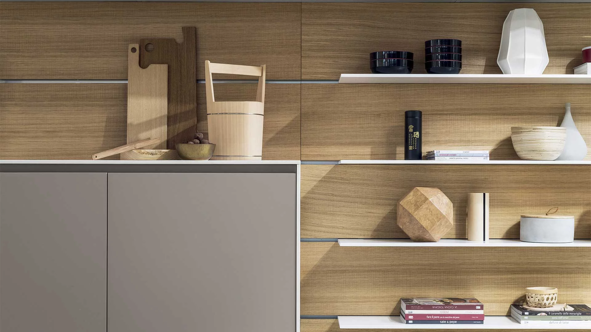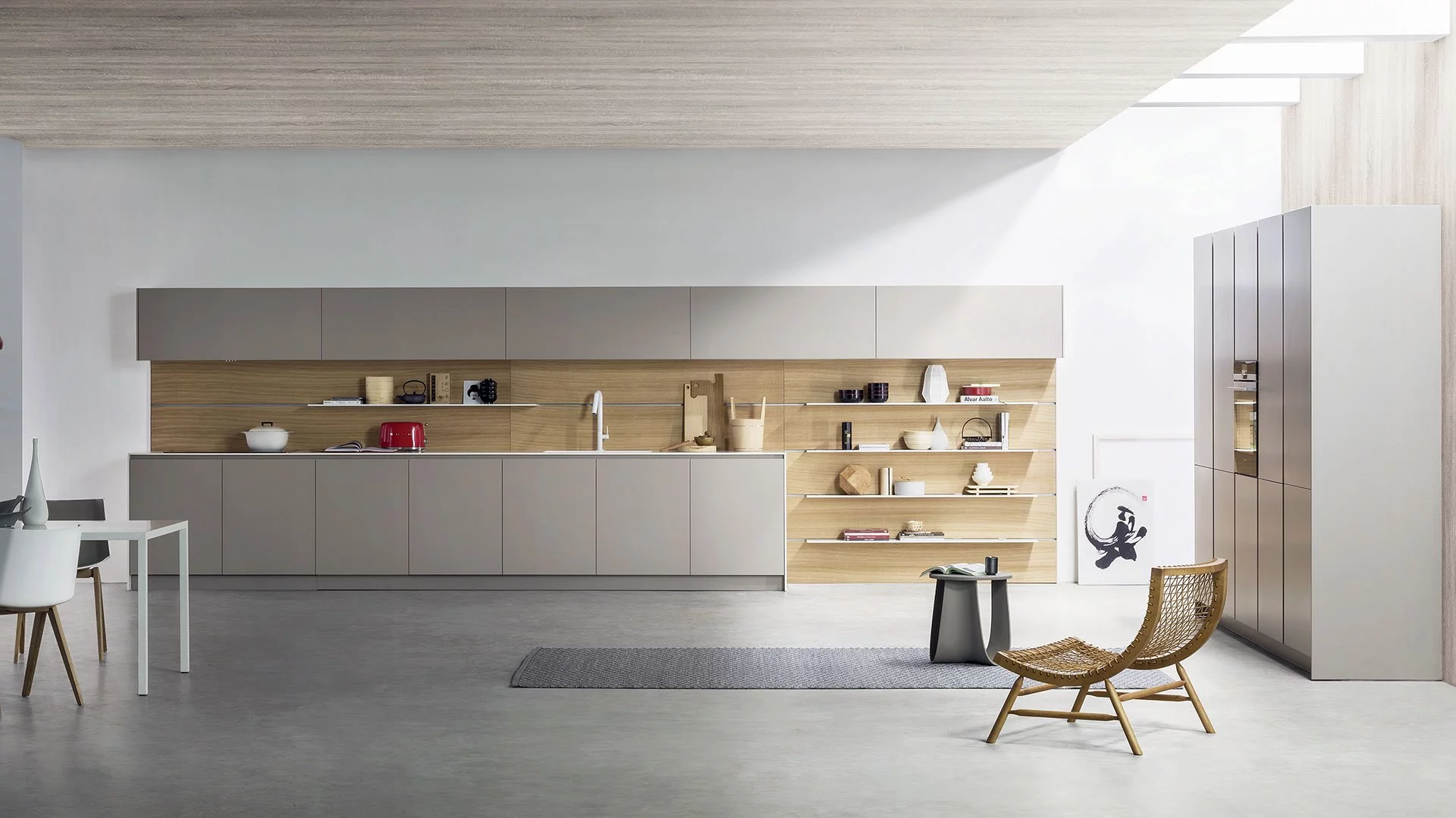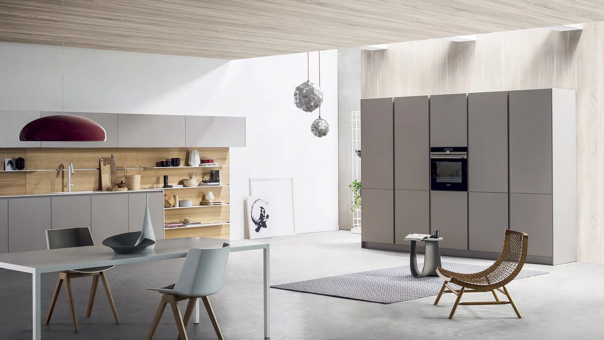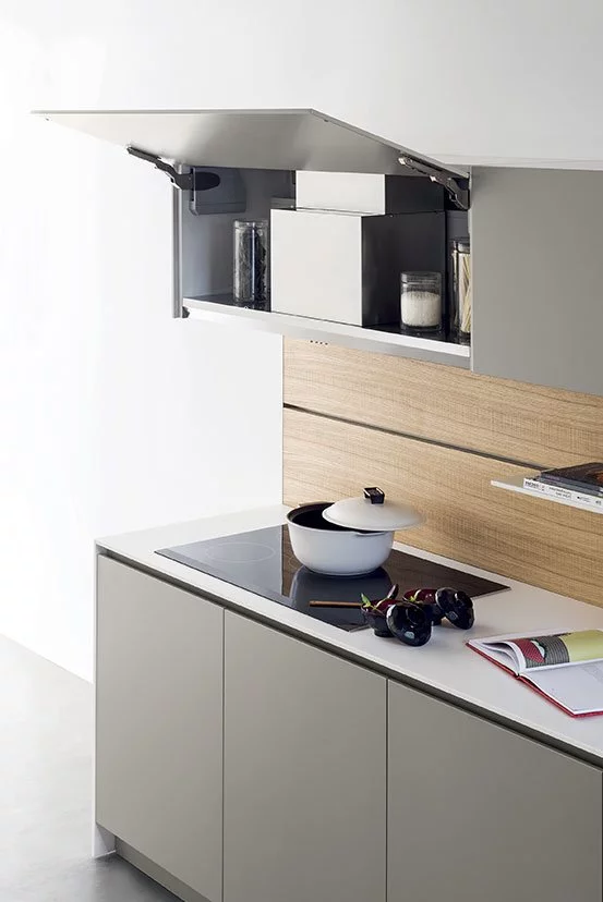 Отличительной чертой кухни K6 от TM Italia является отсутствие привычных ручек для открывания дверок. Вместо них предусмотрены алюминиевые профили, расположенные между передней плоскостью и рабочей поверхностью. Это придает кухне современный строгий дизайн в лучших традициях модерна.