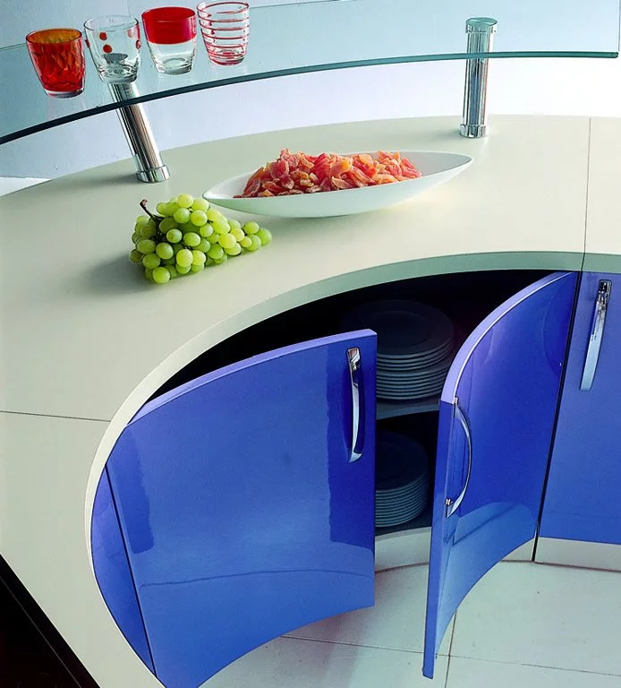 Простор для фантазии открывает интересная кухня Lacche Andromeda от итальянской фабрики Tomassi Cucine. Выполненная в современном стиле закругленной формы эта модель придется по вкусу любителям всего модного и инновационного. Материалами для кухни Lacche Andromeda служит комбинация древесины дорогих сортов, стекла и металла высокого качества. Надёжную защиту и великолепный внешний вид придает этому проекту от Tomassi Cucine шестислойное лаковое покрытие. На выбор заказчика предлагаются различные способы открытия: ручки или механизм push &pull.