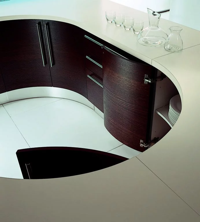 Великолепным образцом современного стиля является итальянская кухня Essenze Opera от ведущего производителя Tomassi Cucine. Закругленная форма гарнитура придётся по вкусу любителям инноваций и модных тенденций. Выполненная из древесины высокого качества кухня Essenze Opera дополняется металлическими ручками на дверцах шкафчика и столешницей из искусственного камня. Важная черта этой модели фабрики Tomassi Cucine — минимализм, поэтому в ней отсутствуют лишние детали.