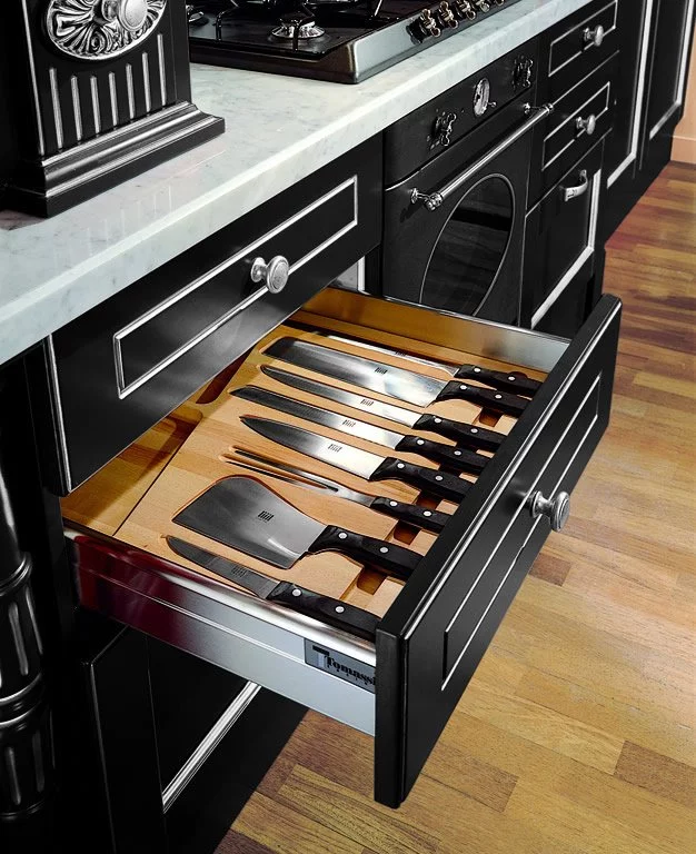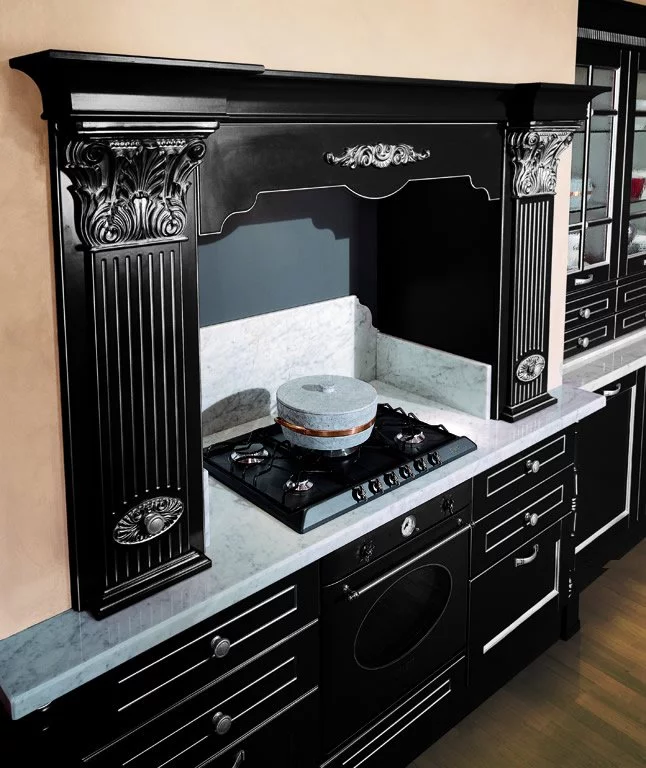 Фабрика Tomassi Cucine предлагает несколько цветовых вариаций этой модели: кремовый, красный, чёрный и зелёный. За подробной информацией касательно отделки кухни Solaria Laccata можно обратиться к нашим специалистам.