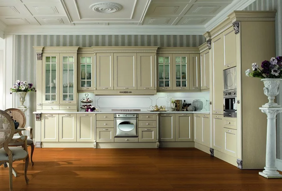 Фабрика Tomassi Cucine предлагает несколько цветовых решений этого проекта: орех, белый и бежевый цвета. Подробную информацию о комплектации кухни можно узнать у наших специалистов.