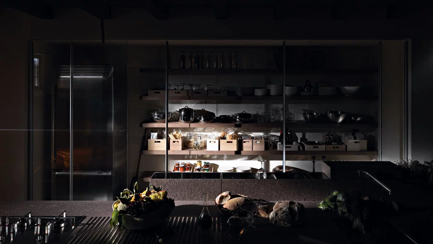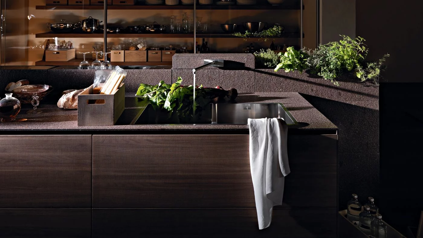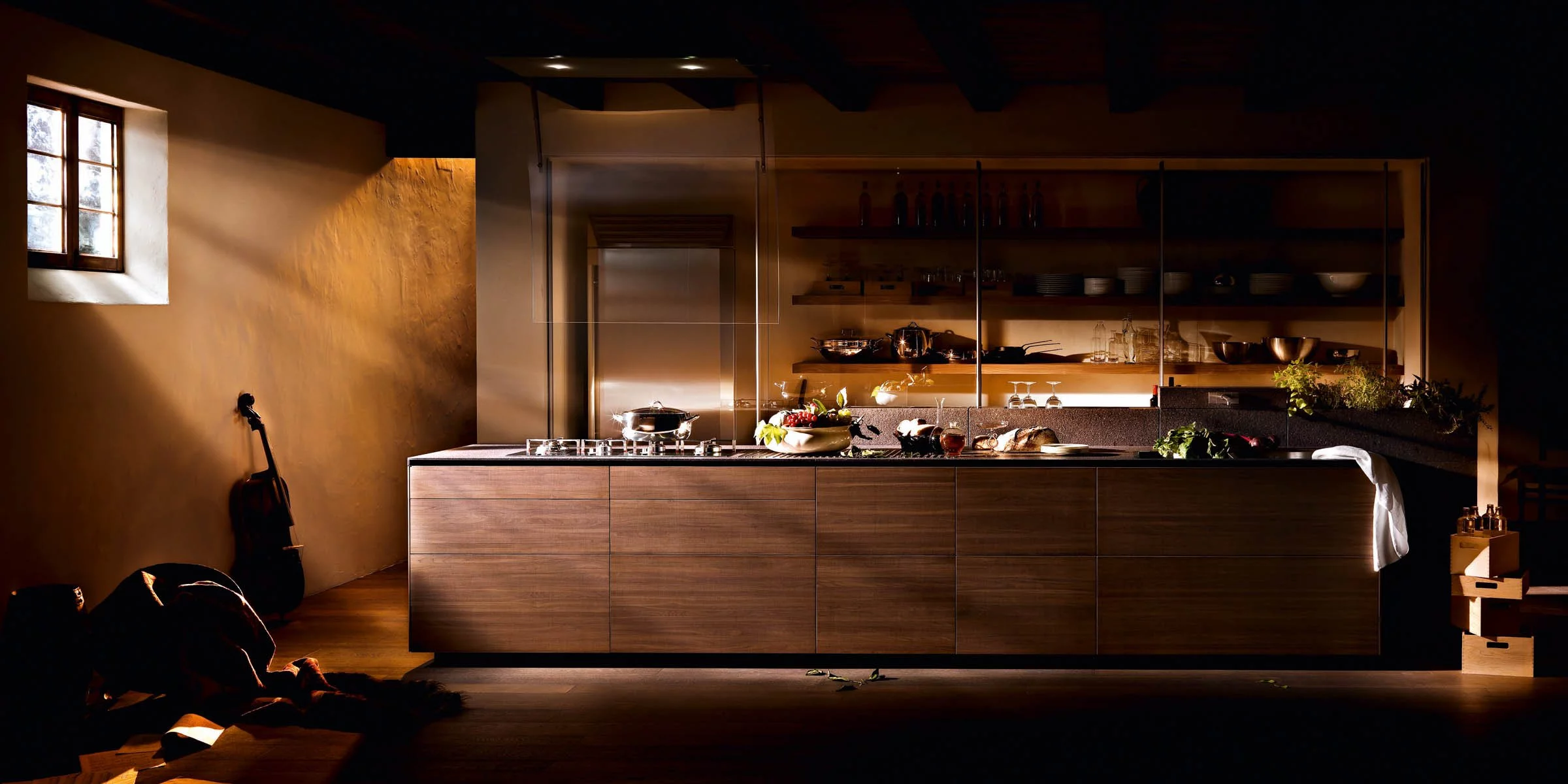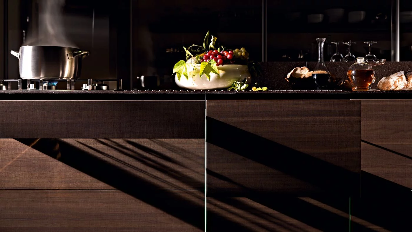 Деревянные покрытия одинаково модны во все времена — это точно знают те, кто создавал Artematica Noce Tattile от Valcucine. В данном случае они дополнены стеклянными перегородками, создающими ощущение большого пространства изысканности.