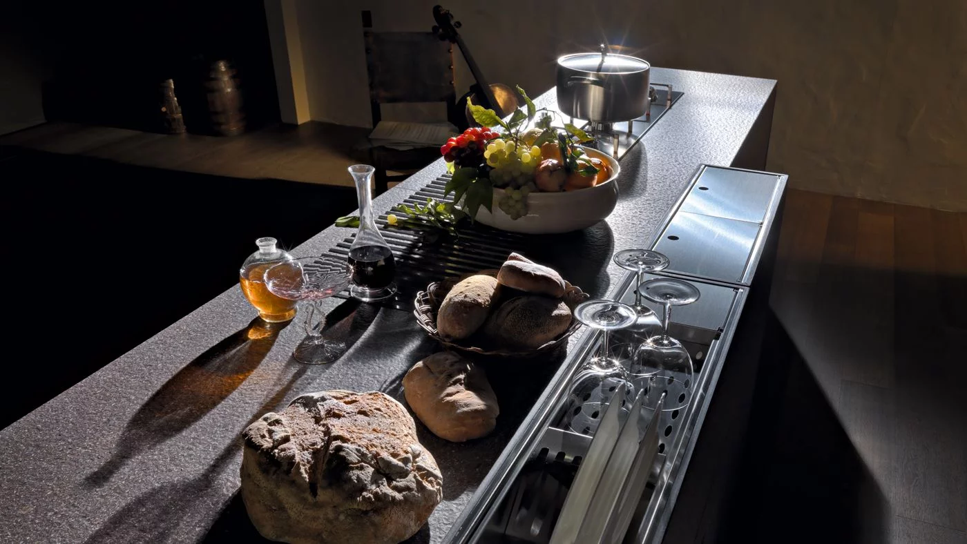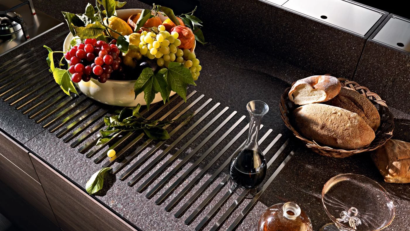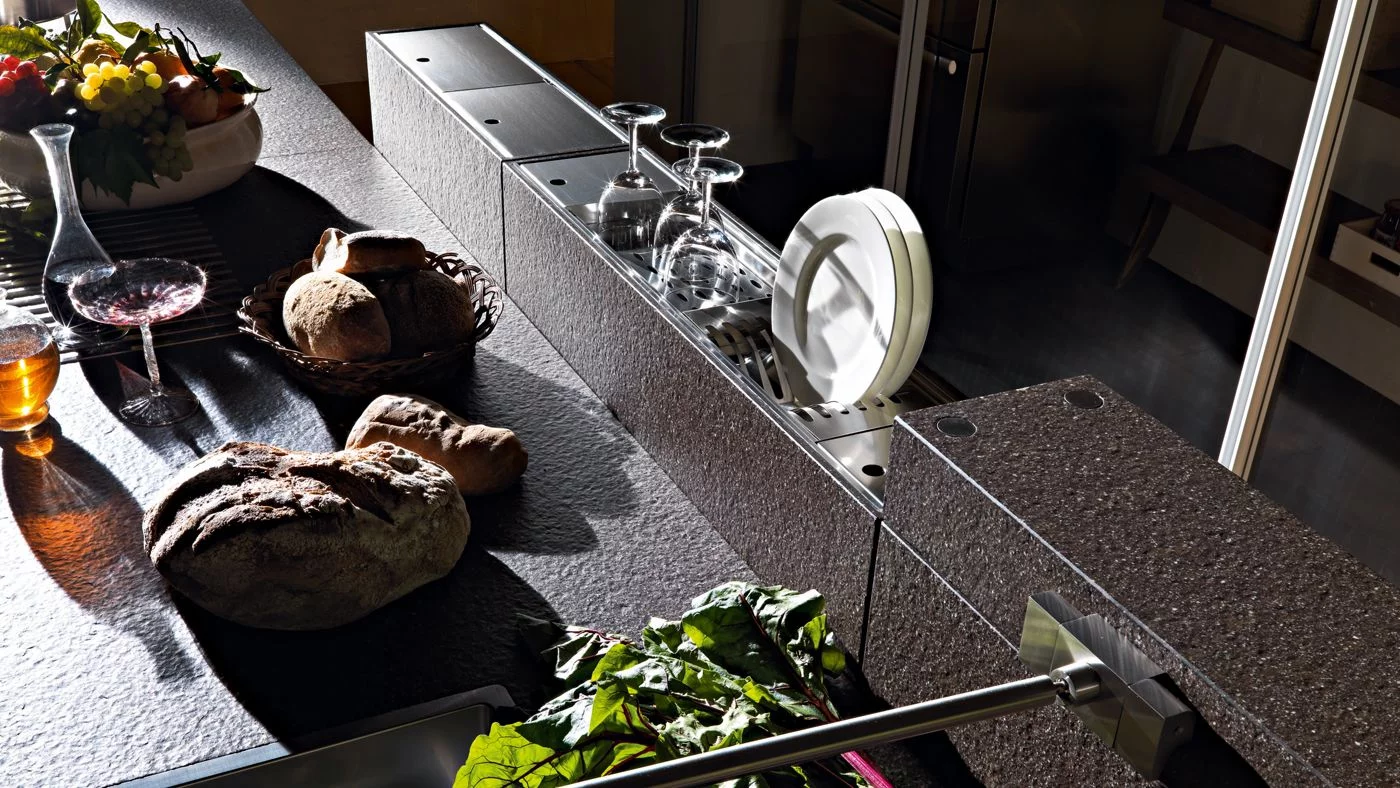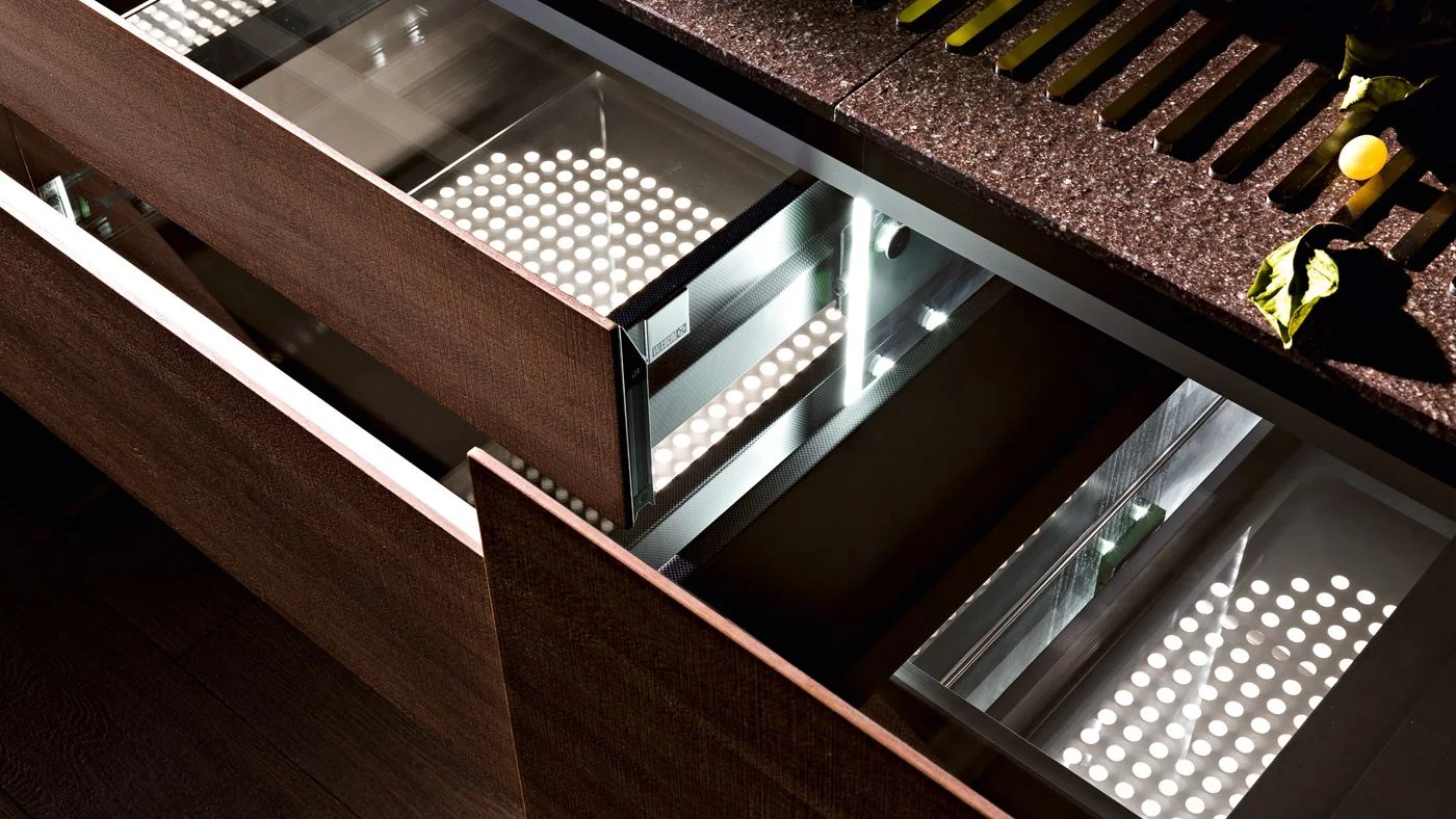 Деревянные покрытия одинаково модны во все времена — это точно знают те, кто создавал Artematica Noce Tattile от Valcucine. В данном случае они дополнены стеклянными перегородками, создающими ощущение большого пространства изысканности.