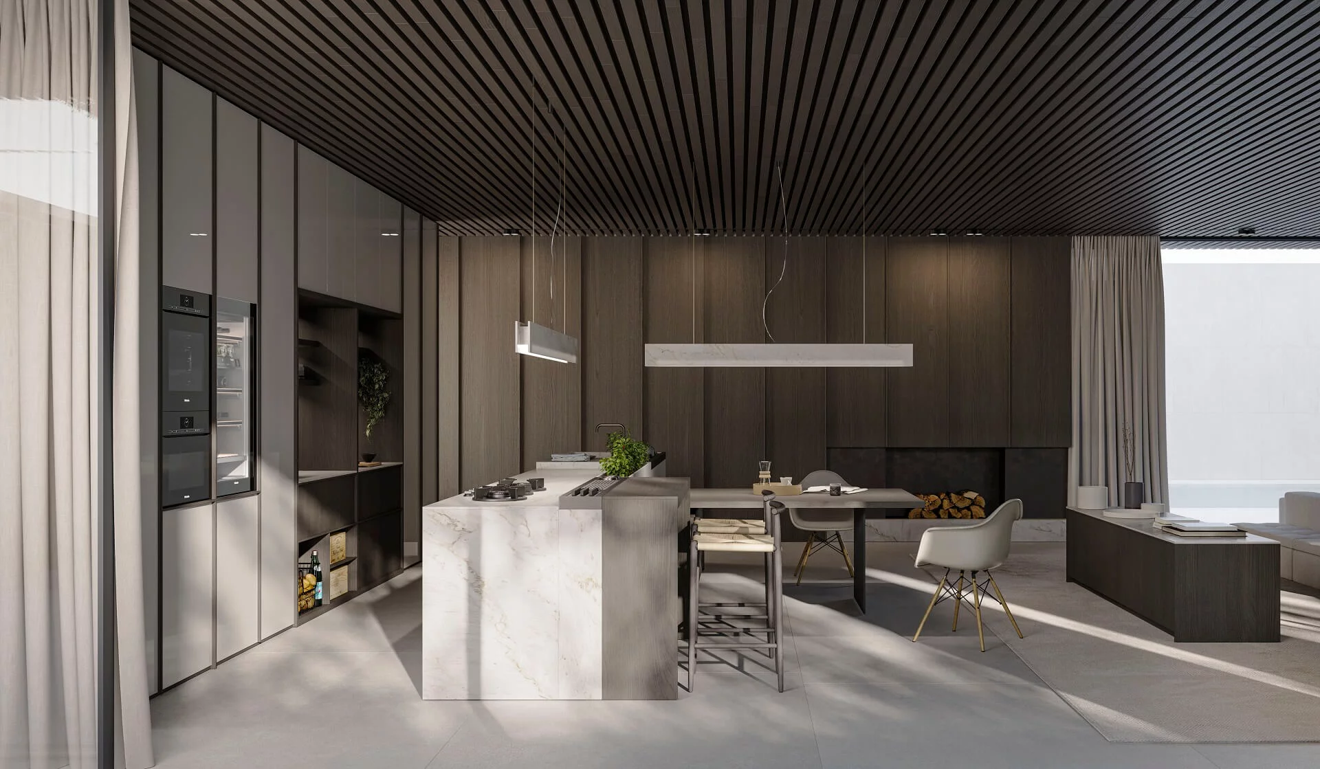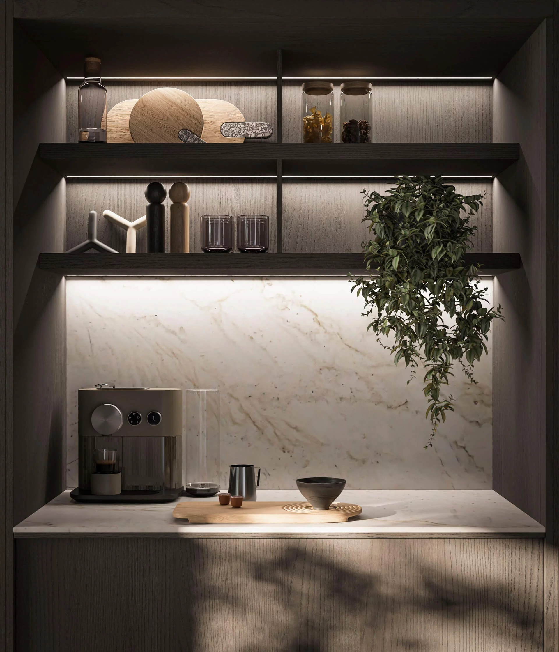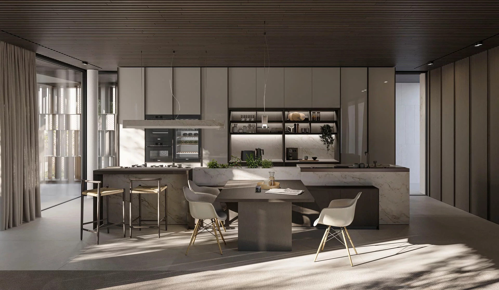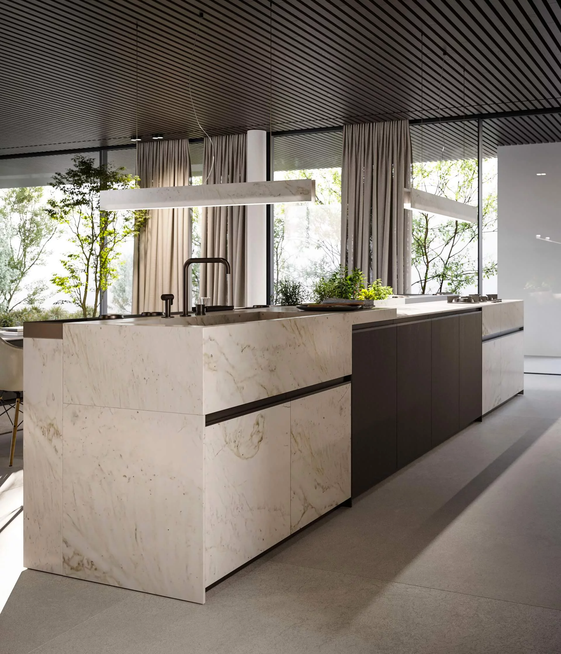 Loggia IN — это новая программа кухонь, разработанная Стефано Каваццана. Дополненная проработанной гаммой высококачественных материалов и отделок, Loggia IN предлагает бесконечные возможности для кастомизации кухонного пространства в каждом его мельчайшем деталях. Среди основных характеристик — дверца с алюминиевой рамой в отделках сатинированная сталь и черный сатин, с панелями, доступными в 8 различных отделках, и система колонн L16, которая предусматривает дверцы толщиной 16 мм с интегрированной ручкой на вертикальном крае для цельных фасадов и горизонтальной или вертикальной для фасадов колонн с несколькими дверцами.