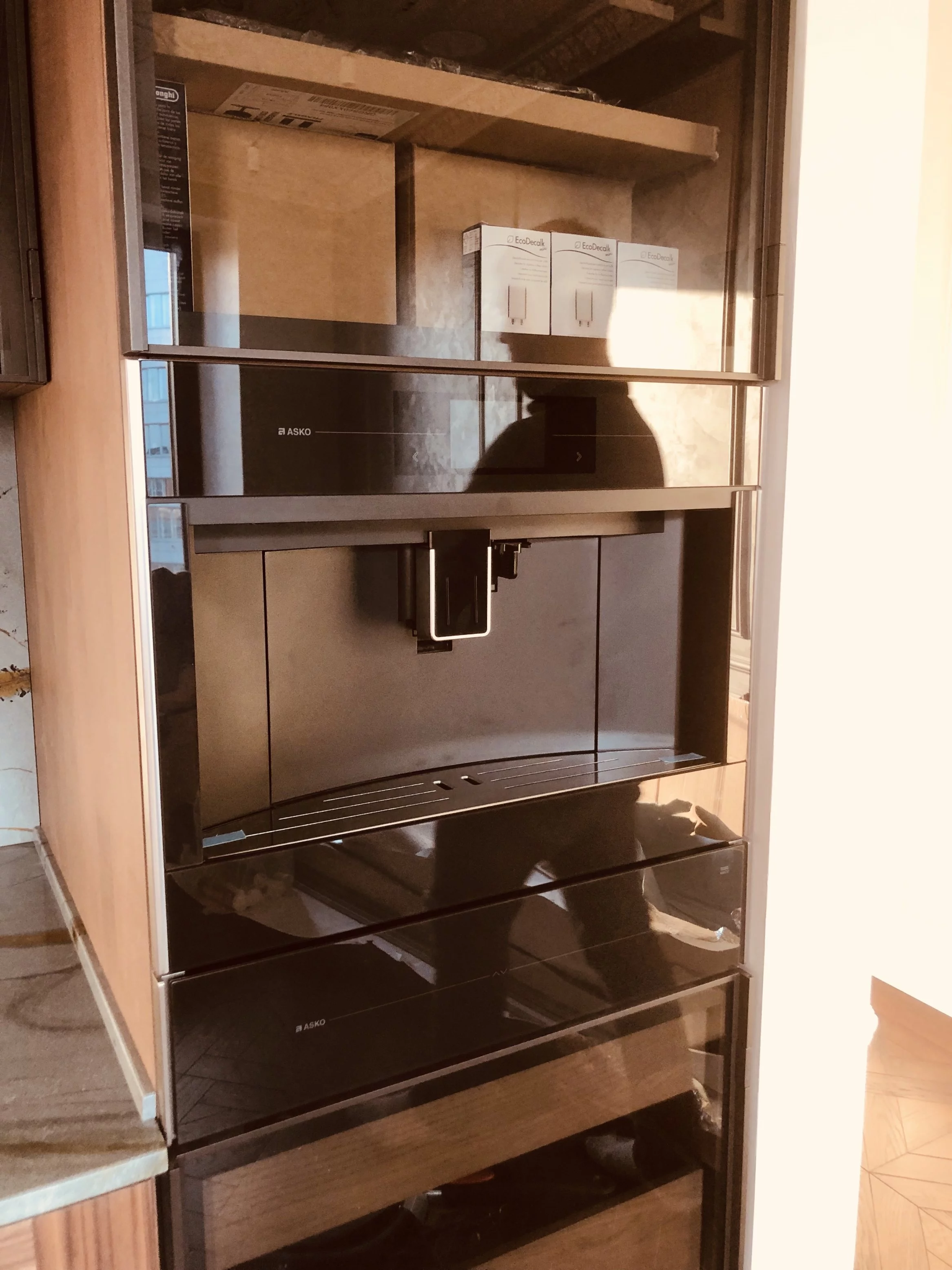 Кухня укомплектована премиальной бытовой техникой Asko серии Elements. Смеситель и мойка — от Blanco (Германия).