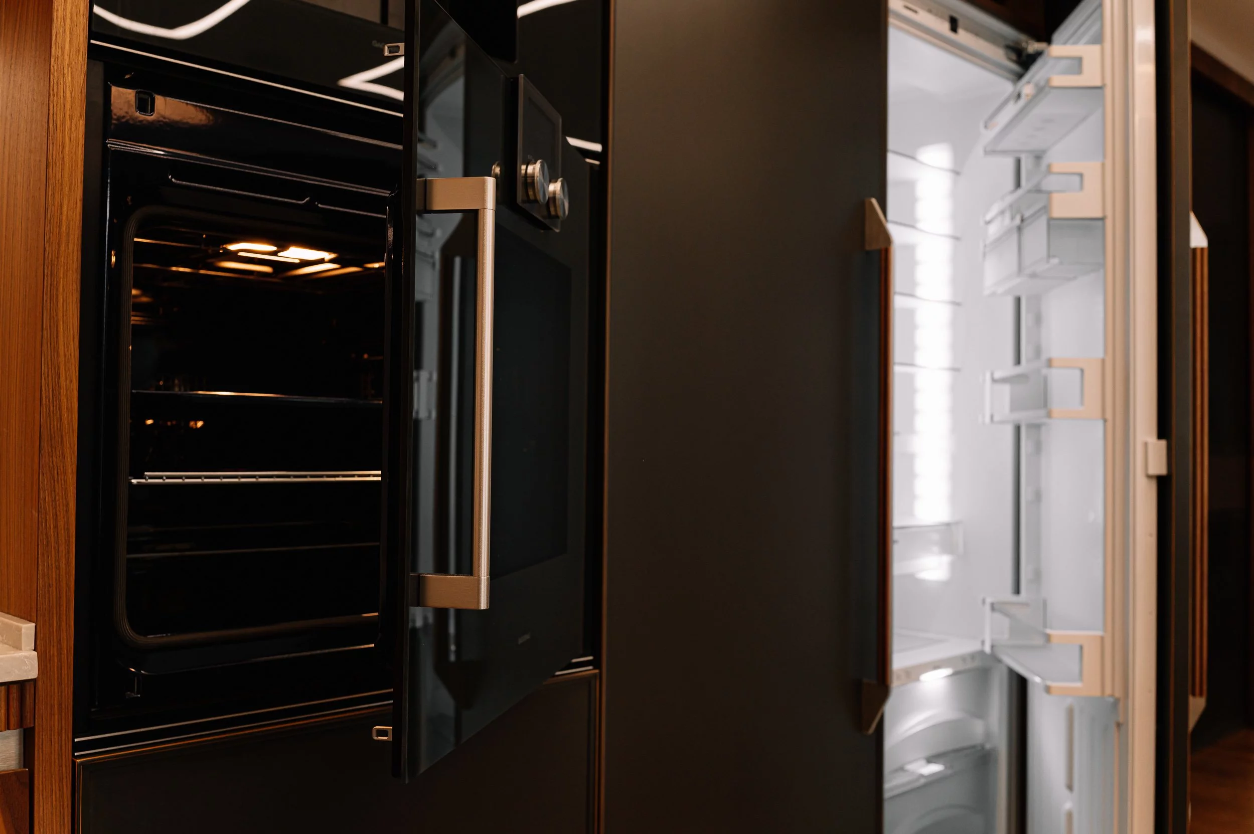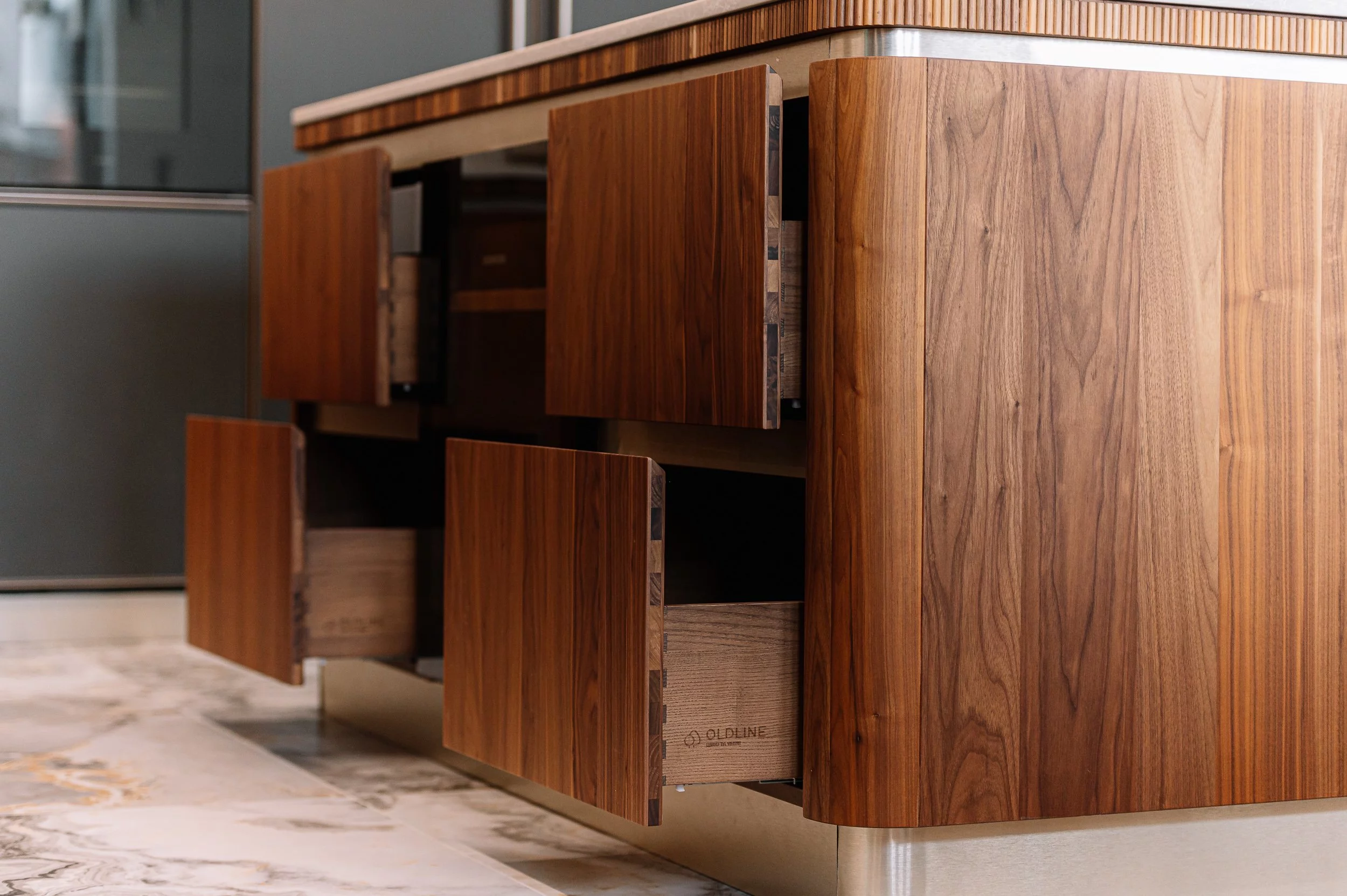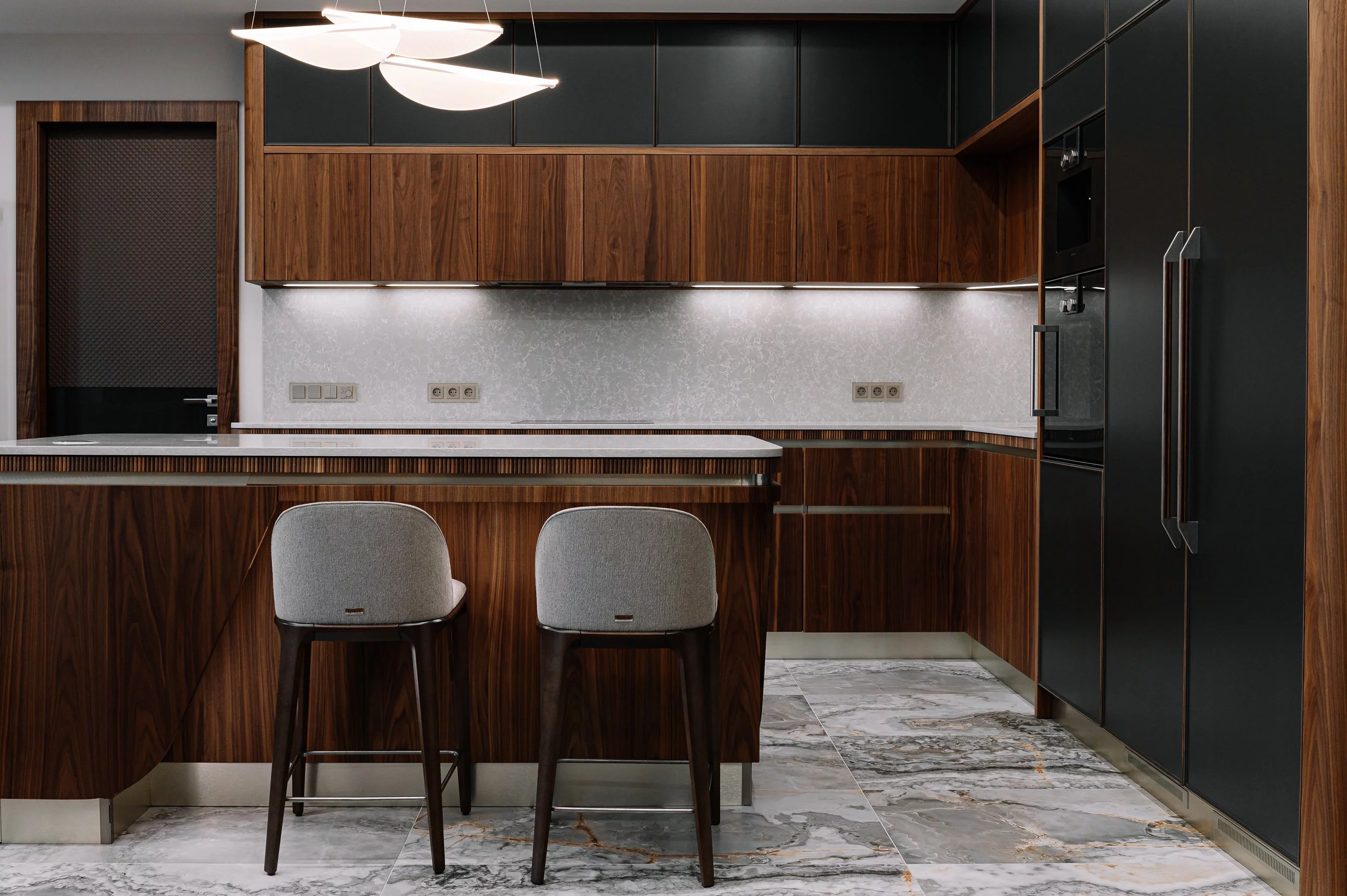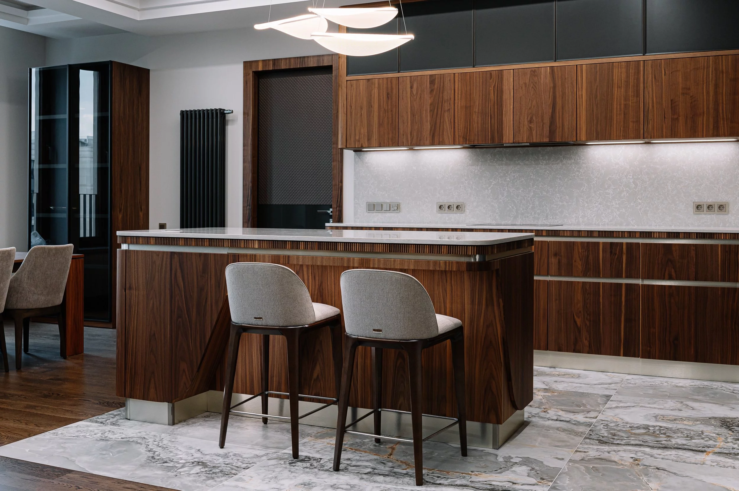 Дизайнеры совместили матовую латунь на фасадах...