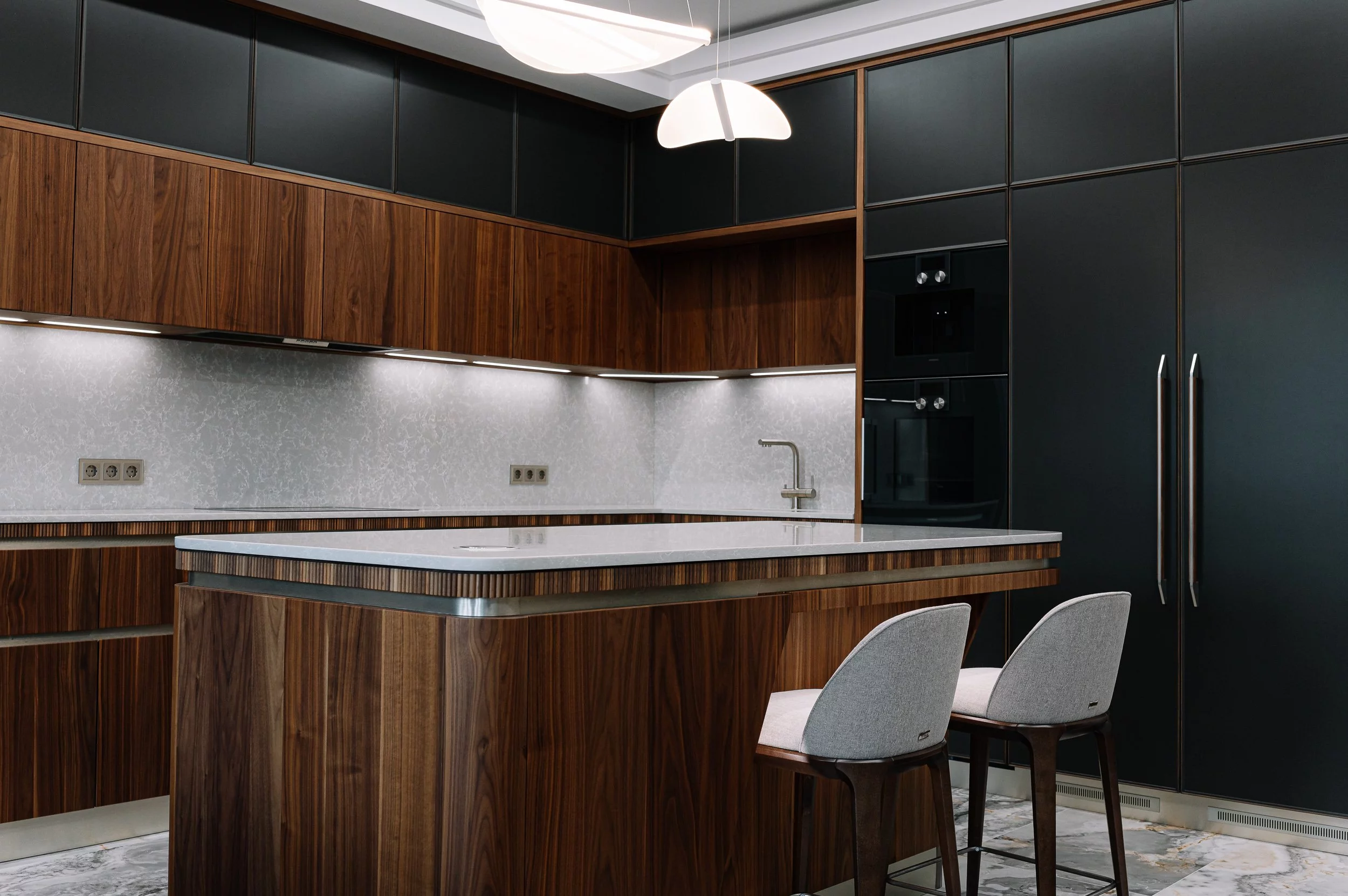 Яркая и стильная кухня Glamour от итальянской фабрики Old Line. Модель в стиле арт деко украшает апартаменты в Москве.